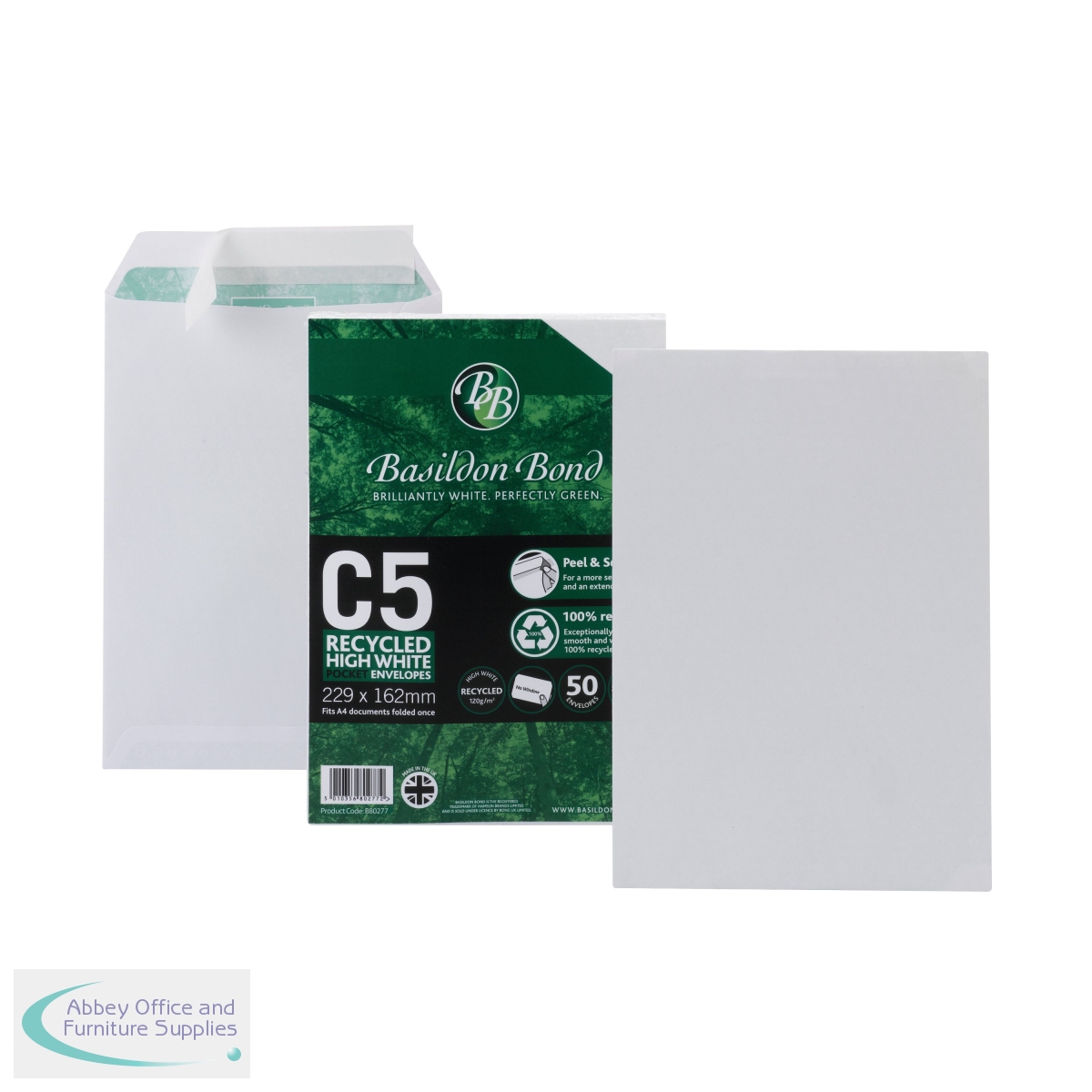 These environmentally friendly Basildon Bond envelopes are made from smooth, white, 100% recycled 120gsm paper. With a simple and secure peel and seal closure, these envelopes are suitable for unfolded A5 sheets, or A4 documents folded once. This pack contains 50 white C5 envelopes.