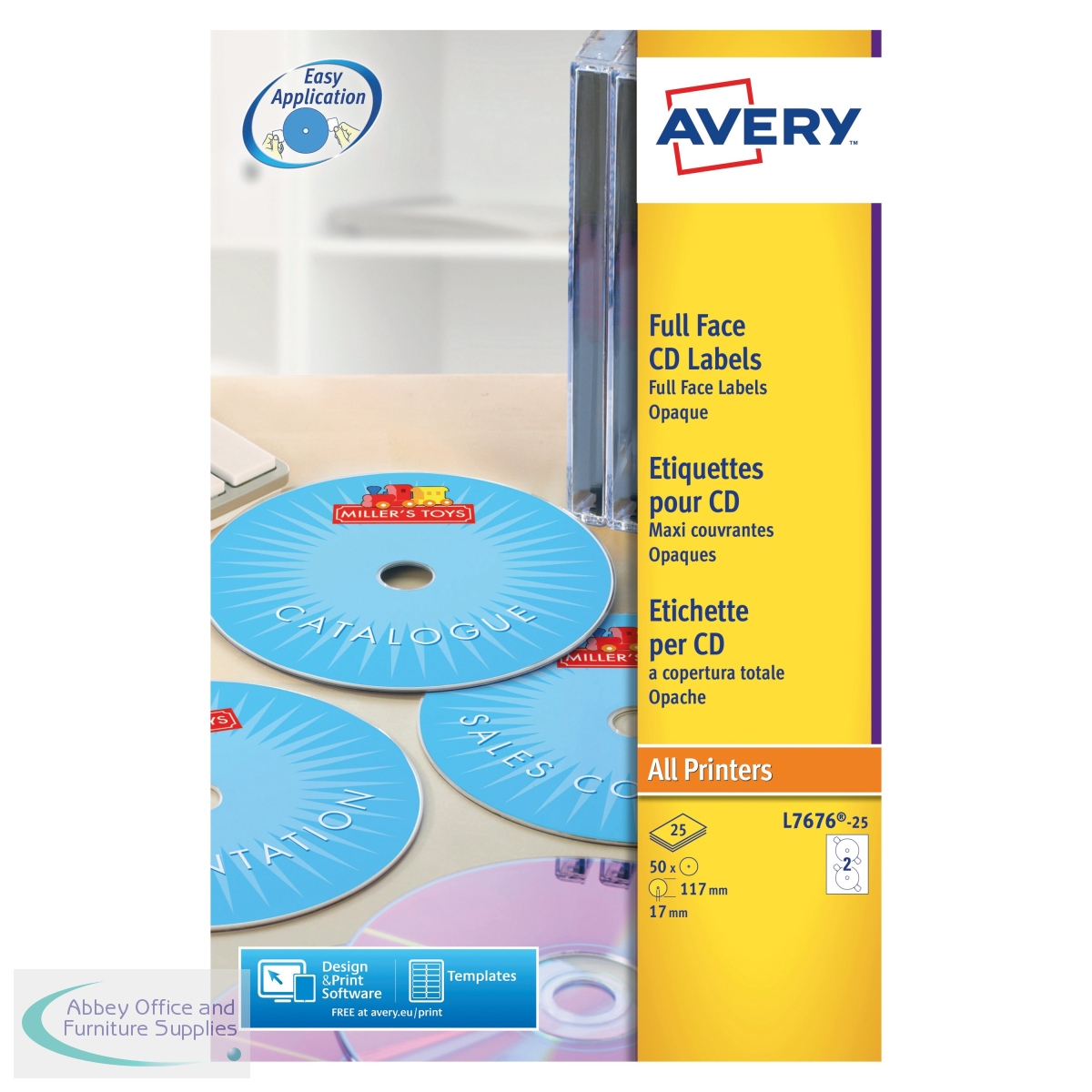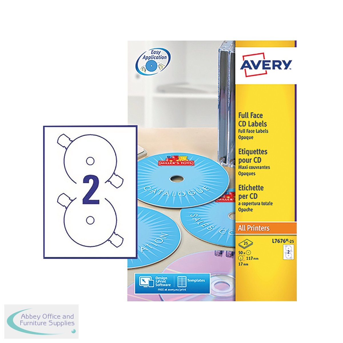 AV98785 - Avery White Full Face CD DVD Laser Label 2 Per Sheet (Pack of 50) L7676-25