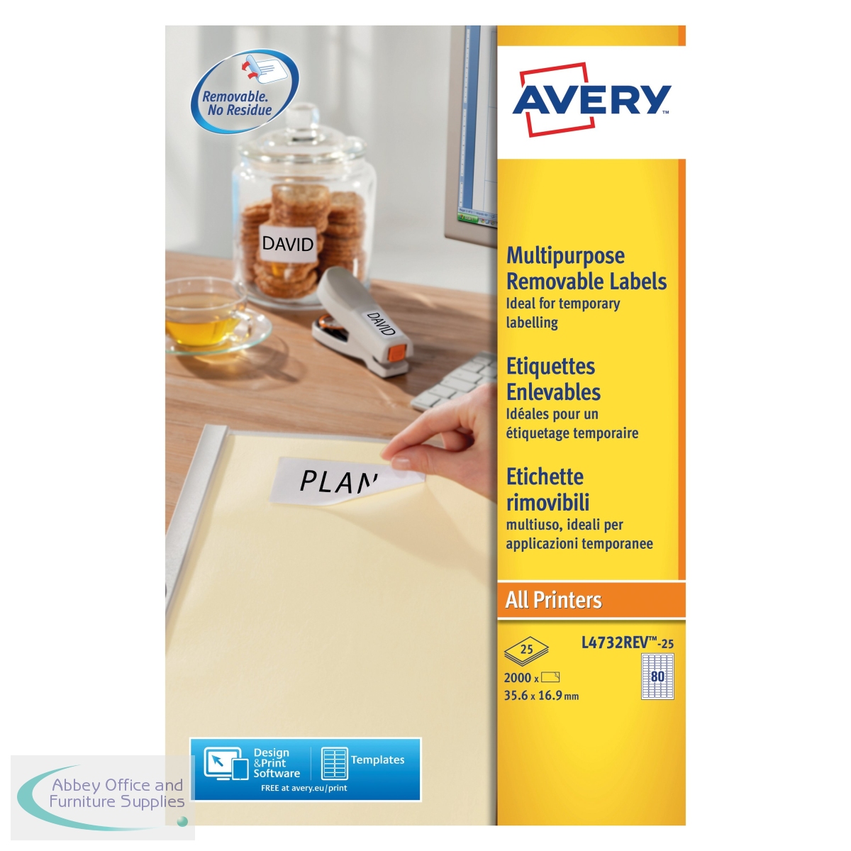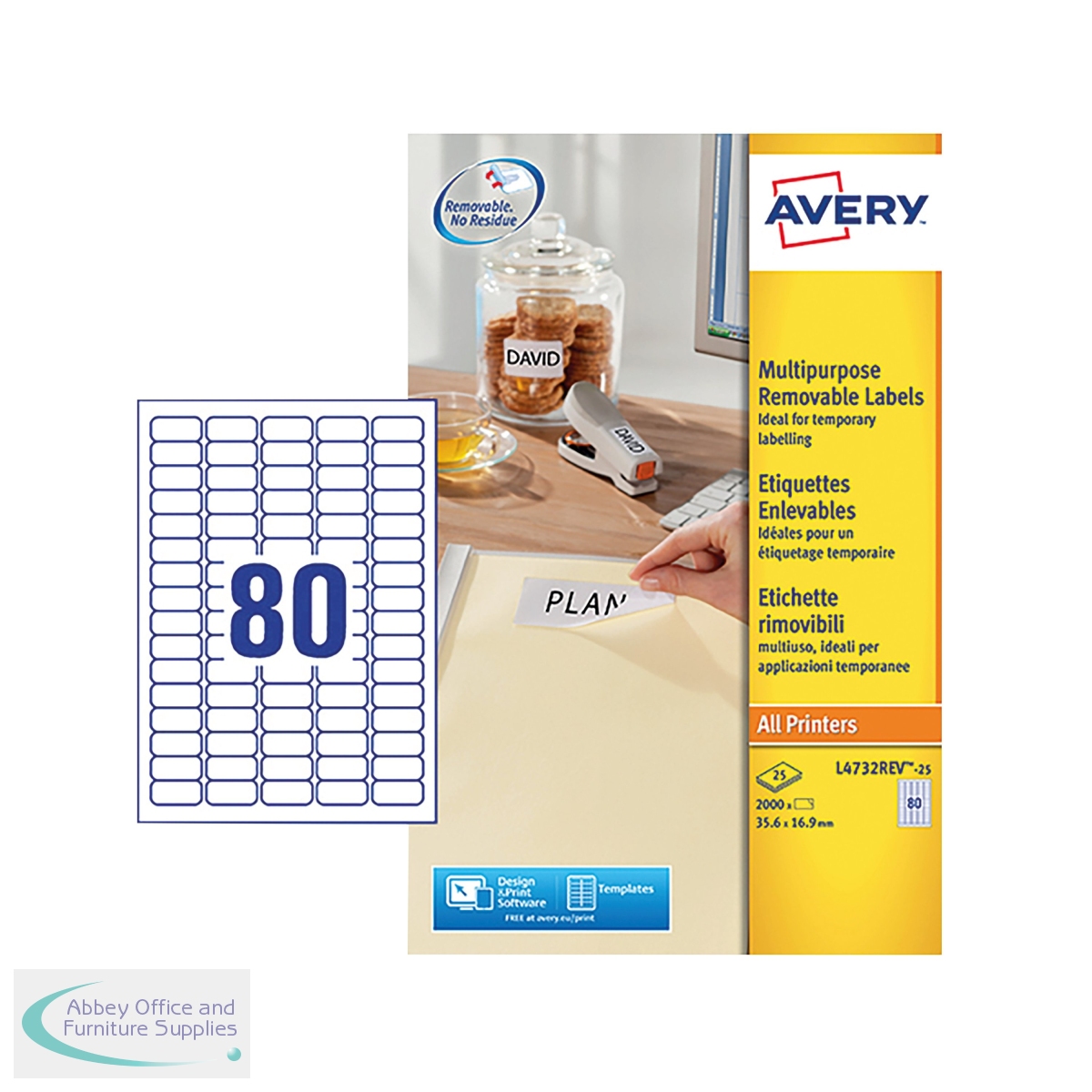 AV10636 - Avery Removable Labels 80 Per Sheet White (Pack of 2000) L4732REV-25