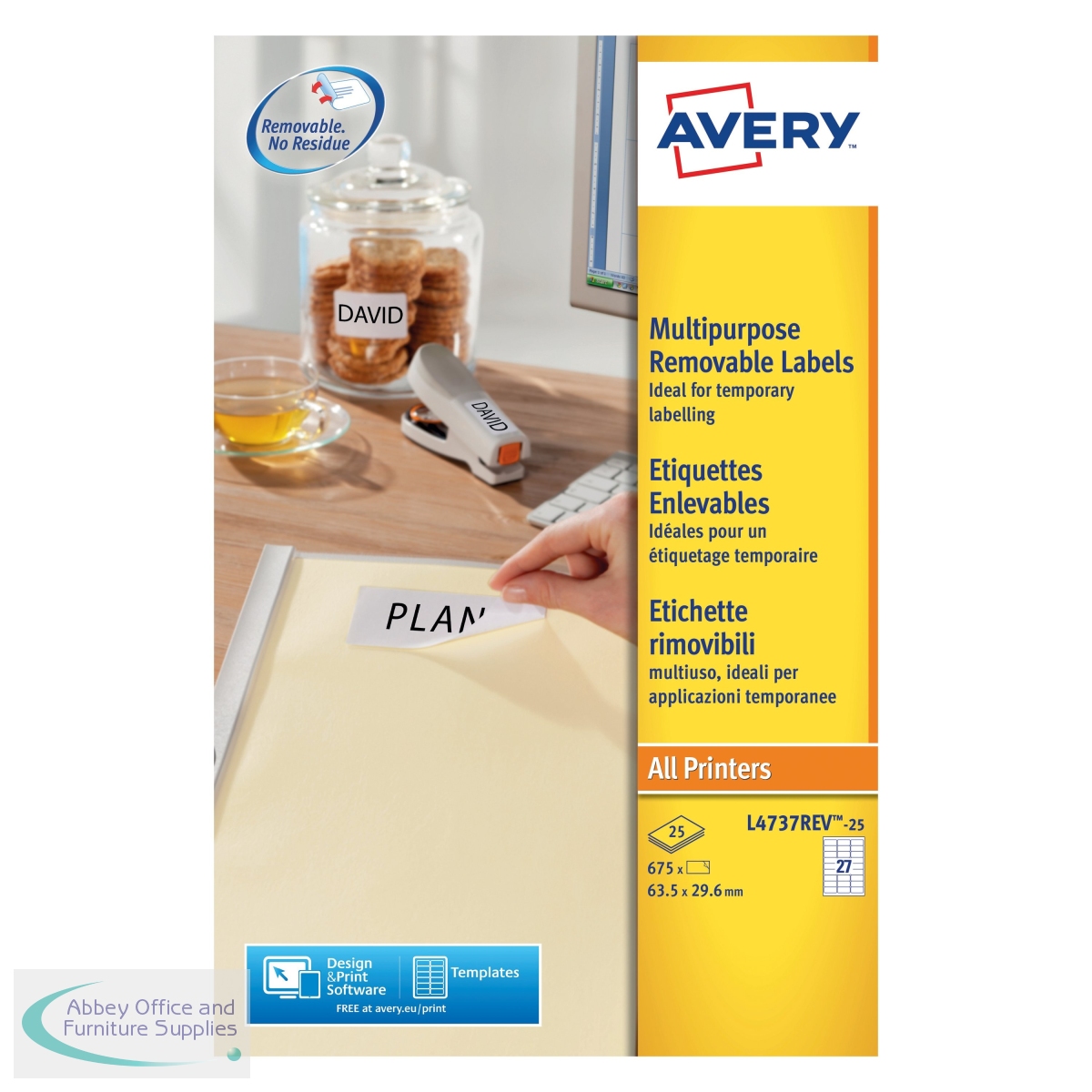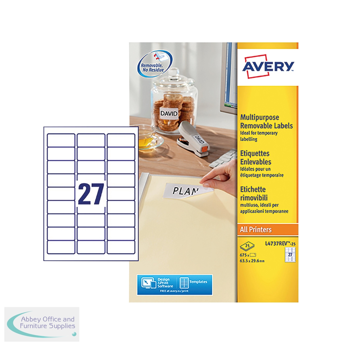 AV10638 - Avery Removable Labels 27 Per Sheet White (Pack of 675) L4737REV-25