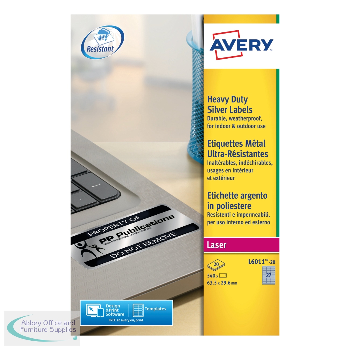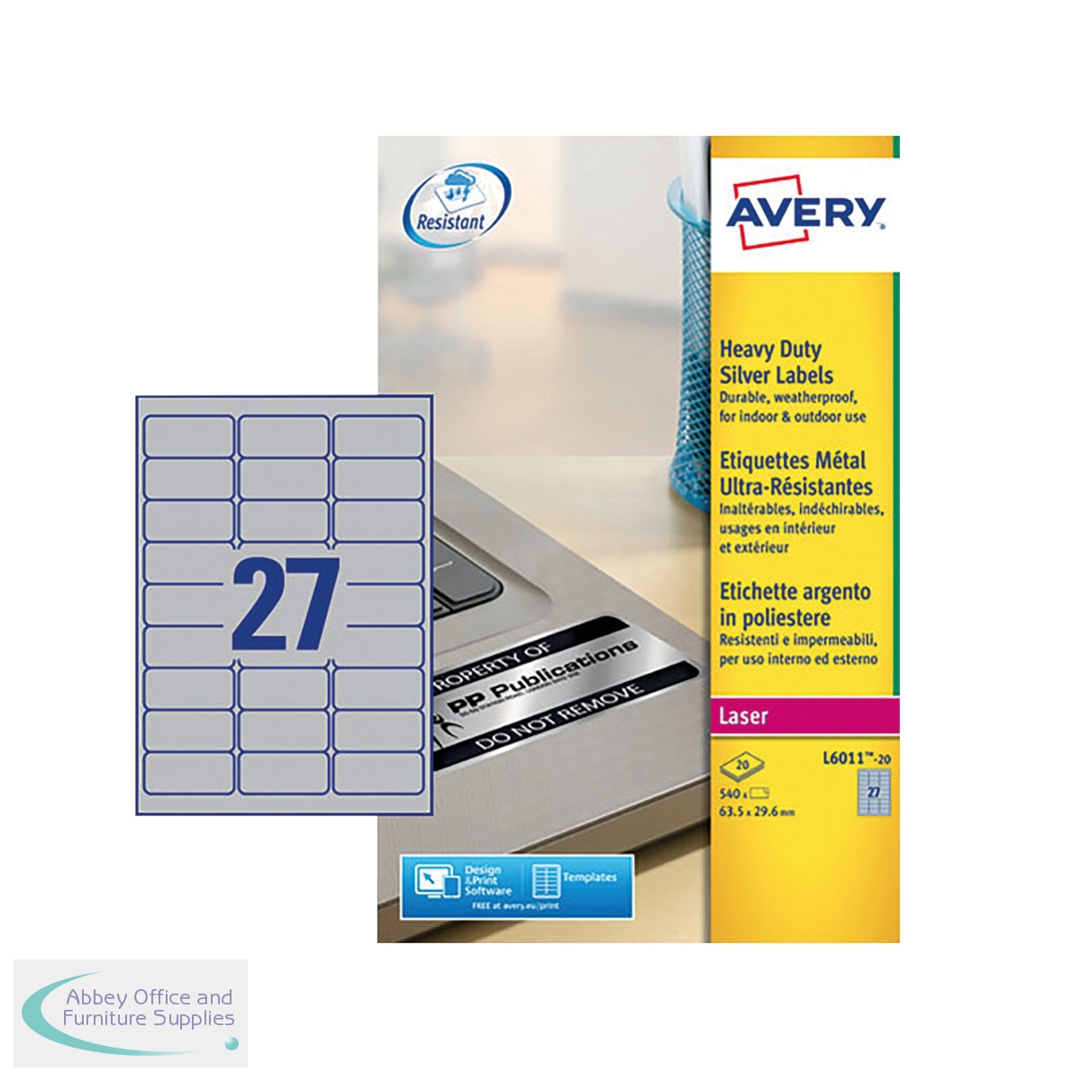 AV13610 - Avery Laser Label H/Duty 27 Per Sheet Silver (Pack of 540) L6011-20