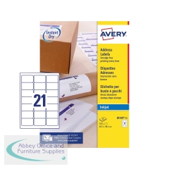 For use with inkjet printers, these Avery address labels feature QuickDRY technology for smudge-free printing. The labels provide outstanding print quality and excellent adhesion for reliable, professional mailing. Each white label measures 63.5 x 38.1mm. This pack contains 25 A4 sheets, with 21 labels per sheet (525 labels in total). Redeem an Avery voucher or a shopping voucher worth up to ��15! (averyrewardsclub.co.uk).