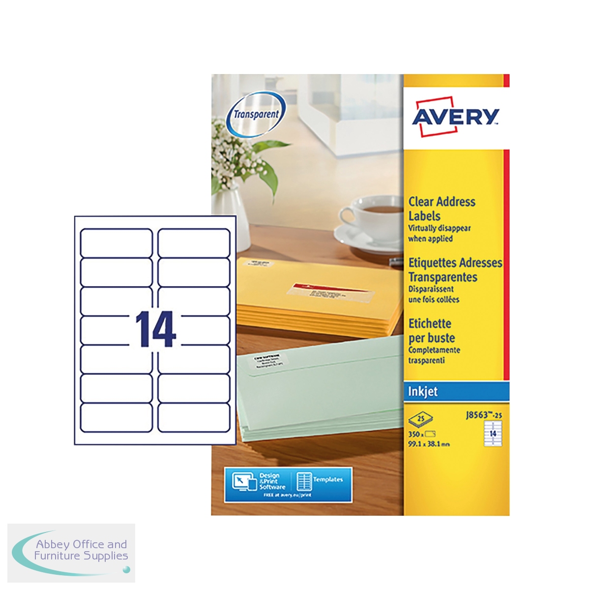 AV17847 - Avery Inkjet Address Labels 14 Per Sheet Clear (Pack of 350) J8563-25