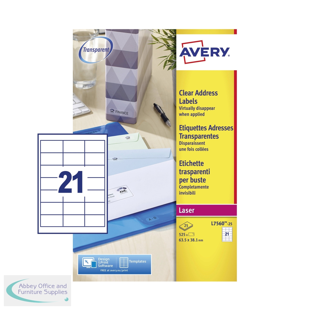 AV17776 - Avery Laser Address Labels 21 Per Sheet Clear (Pack of 525) L7560-25