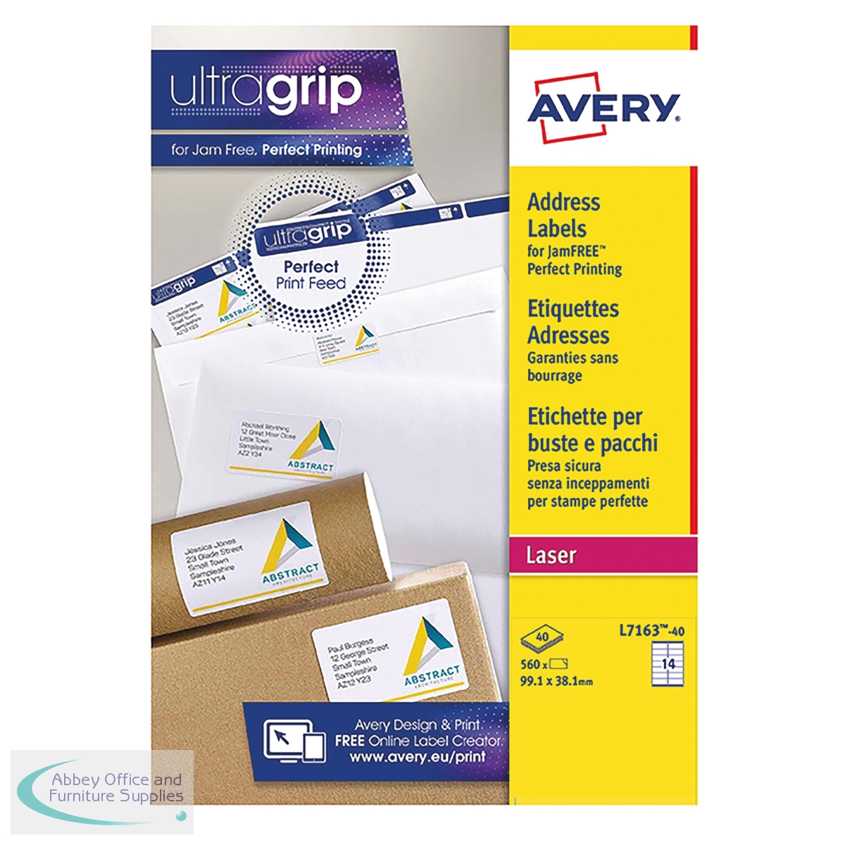 AV7163 - Avery Ultragrip Laser Labels 99.1x38.1mm White (Pack of 560) L7163-40