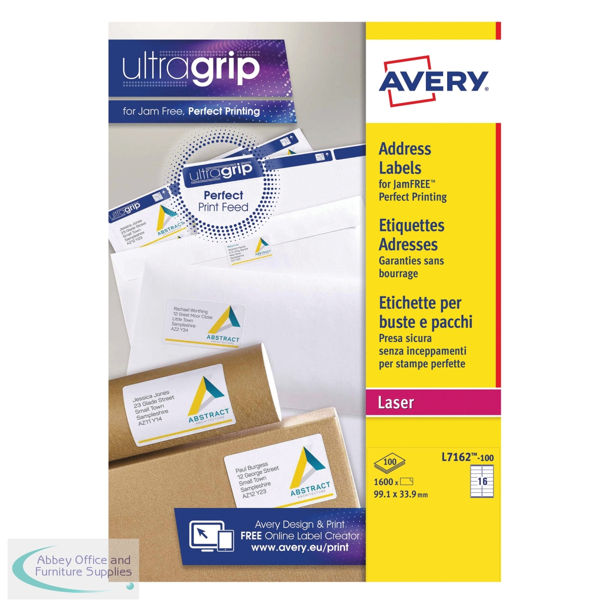 AVL7162 - Avery Ultragrip Laser Labels 99.1x33.9mm White (Pack of 1600) L7162-100