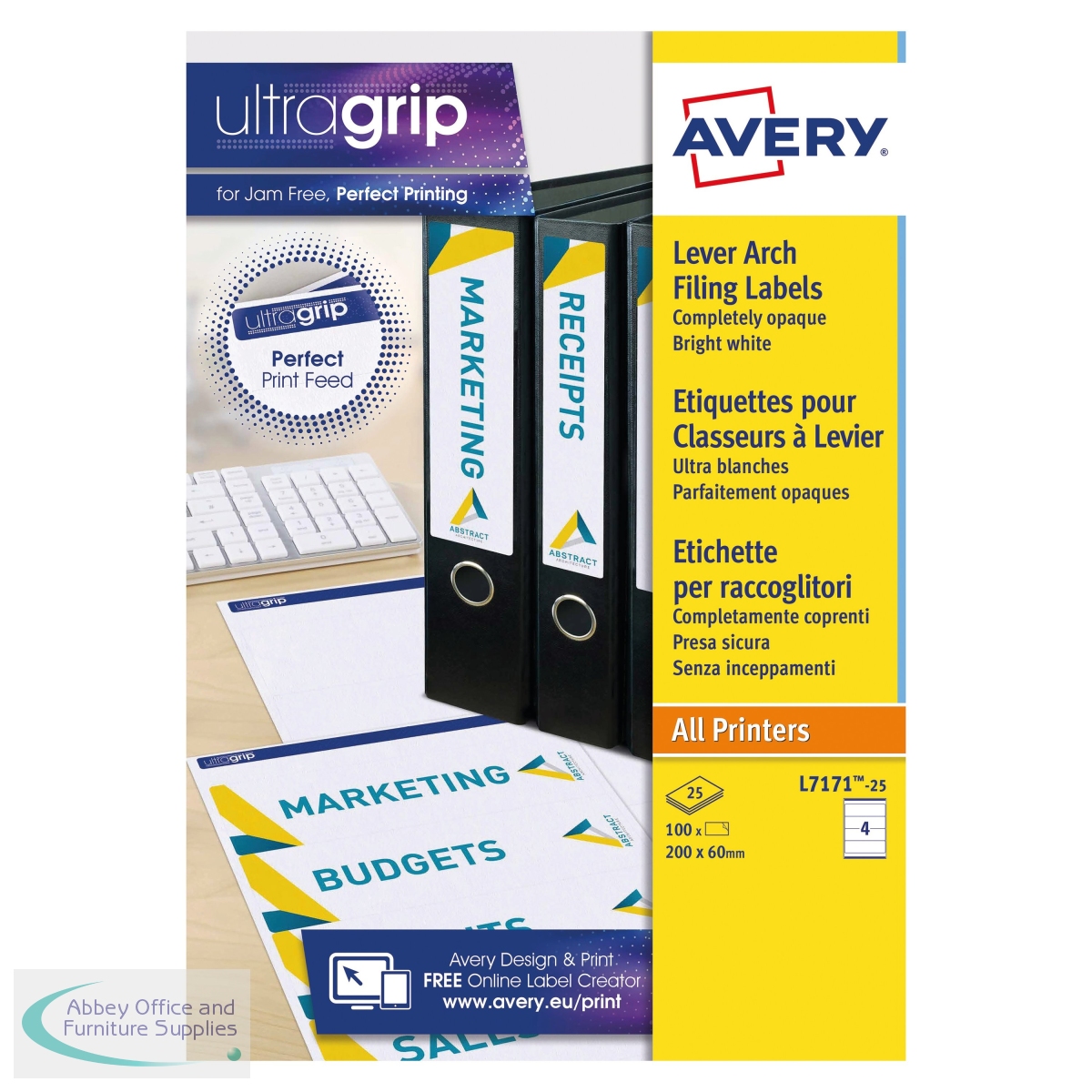AVL7171 - Avery Laser Inkjet Lever Arch Labels 200x60mm Wht (Pack of 100) L7171-25