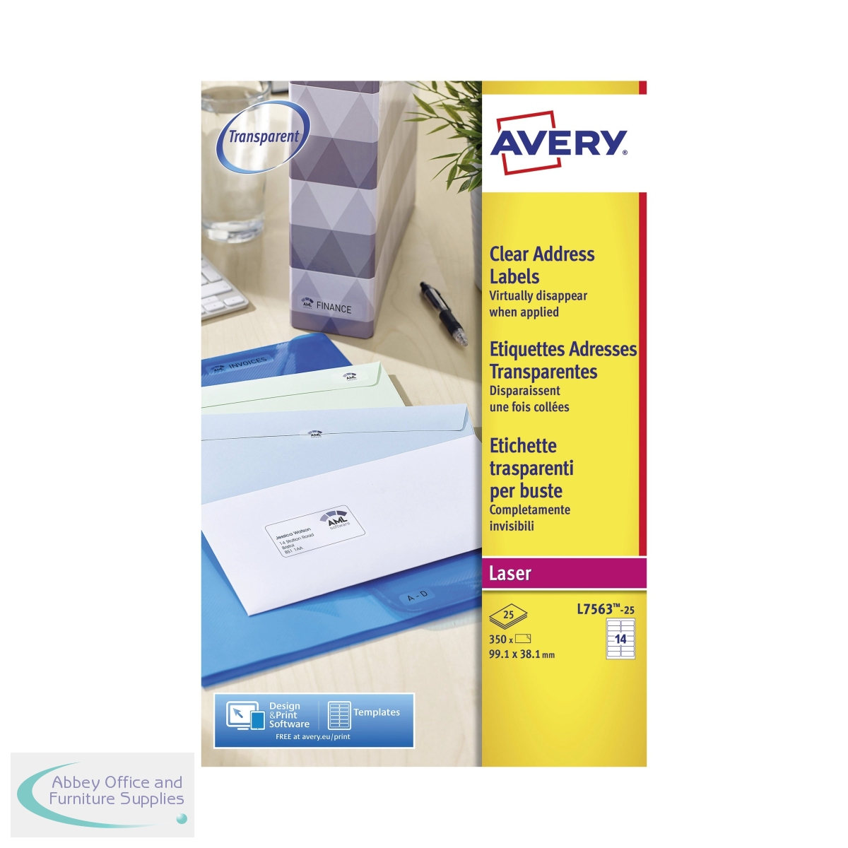 [ Avery; Labels; Laser Labels; Clear; OEM Code L7563-25; EAN 05014702177293; VOW Code AVL7563S ]