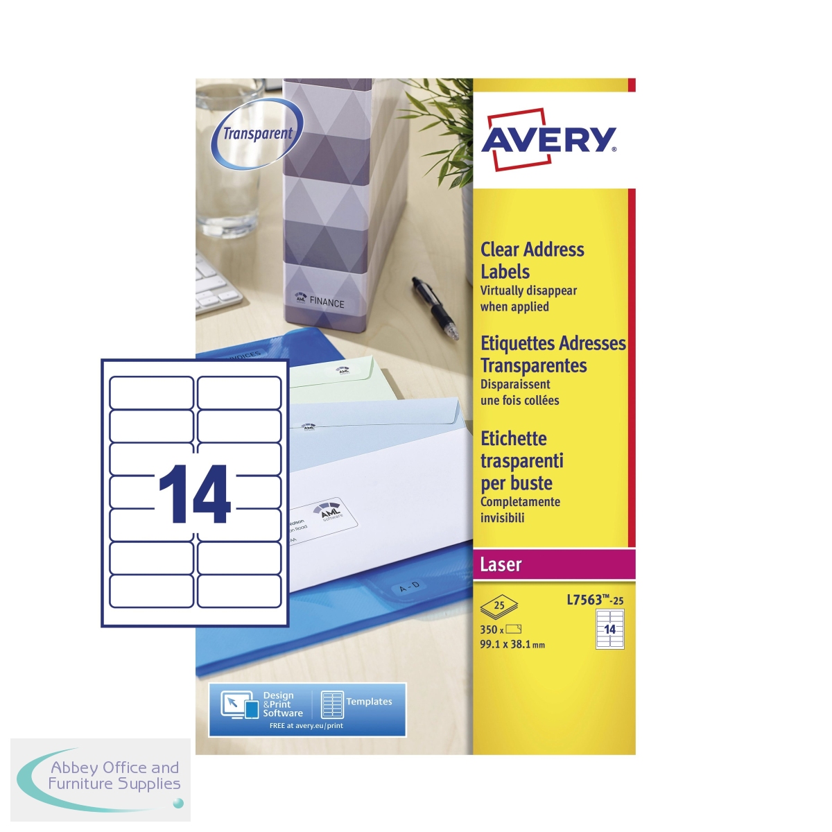 AVL7563S - Avery Laser Labels 99.1x38.1 14 Per Sheet Clear (Pack of 350) L7563S