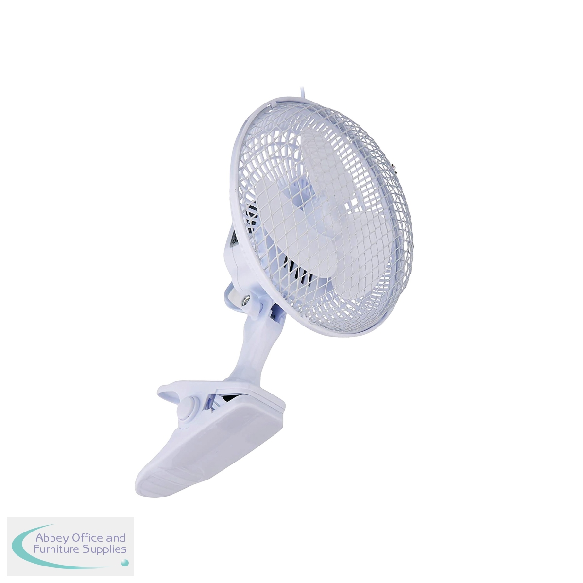 This six inch diameter fan features a sturdy easy-to-open fan clip that lets you secure the fan to almost any tabletop or shelf, even running upside down, allowing you to enjoy a cool and pleasant atmosphere. The fan head can be tilted, also pivot at a vertical angle provides a cooling stream of air at almost any angle, or use the two speed adjustable control to suit your preferences. This 20W motor compact fan offers excellent flexibility in terms of portability. A quiet desk fan with a silent operation at 48 dBA allows you to work or sleep peacefully. Plug in, mains powered with a 1.5m cable.