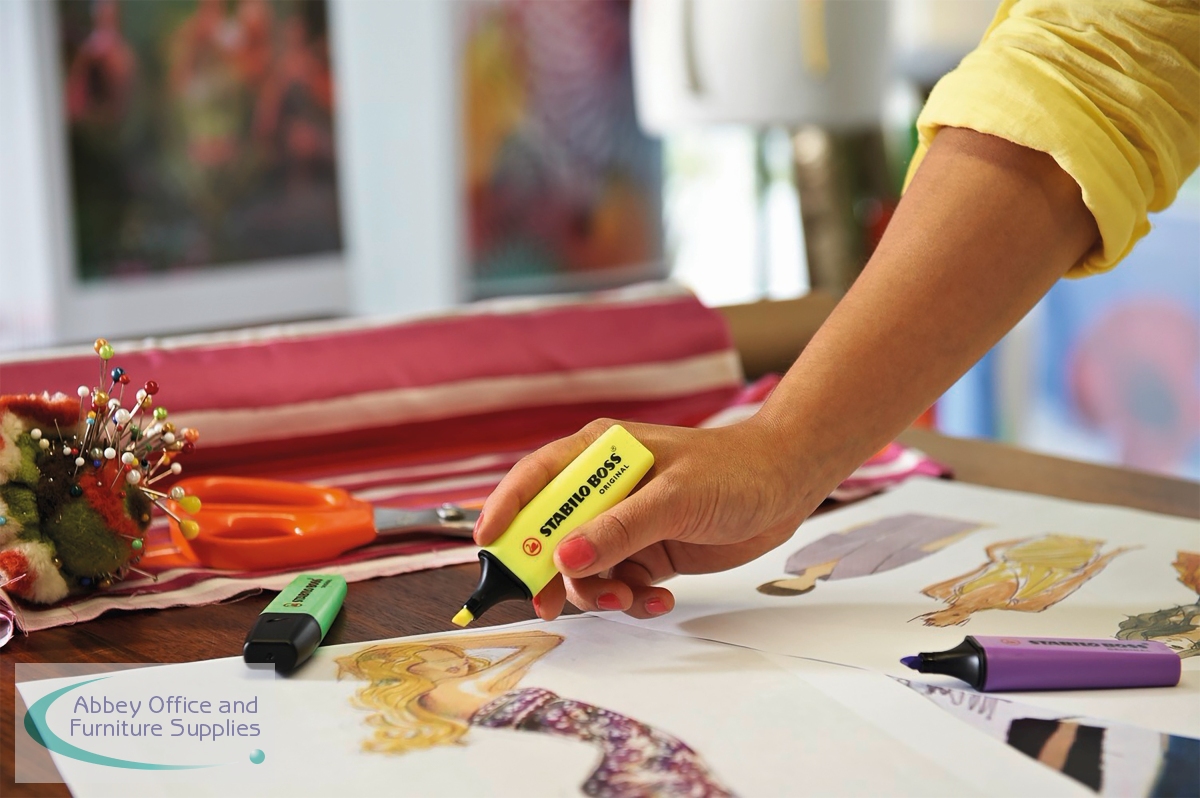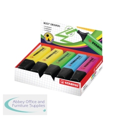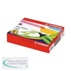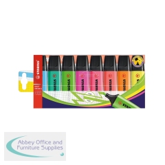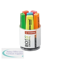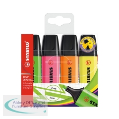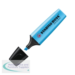 The Stabilo Boss Original is Europe's best selling, most popular highlighter. With its distinctive shape and ultra fluorescent colours, it is a high quality highlighter that writes further, lasts longer and will not dry out. The wedge shape tip can be used to draw broad and fine lines, making it perfect for highlighting, underlining text and even colouring. The Anti Dry Out Technology means the cap can be left off for up to 4 hours and the super bright colours will not fade. This pack contains 10 blue highlighters.