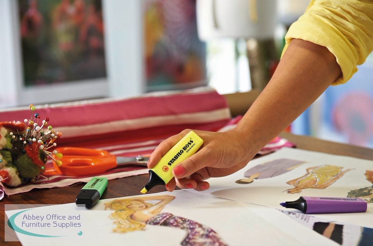 The Stabilo Boss Original is Europe's best selling, most popular highlighter. With its distinctive shape and ultra fluorescent colours, it is a high quality highlighter that writes further, lasts longer and will not dry out. The wedge shape tip can be used to draw broad and fine lines, making it perfect for highlighting, underlining text and even colouring. The Anti Dry Out Technology means the cap can be left off for up to 4 hours and the super bright colours will not fade. This pack contains 10 lavender highlighters.