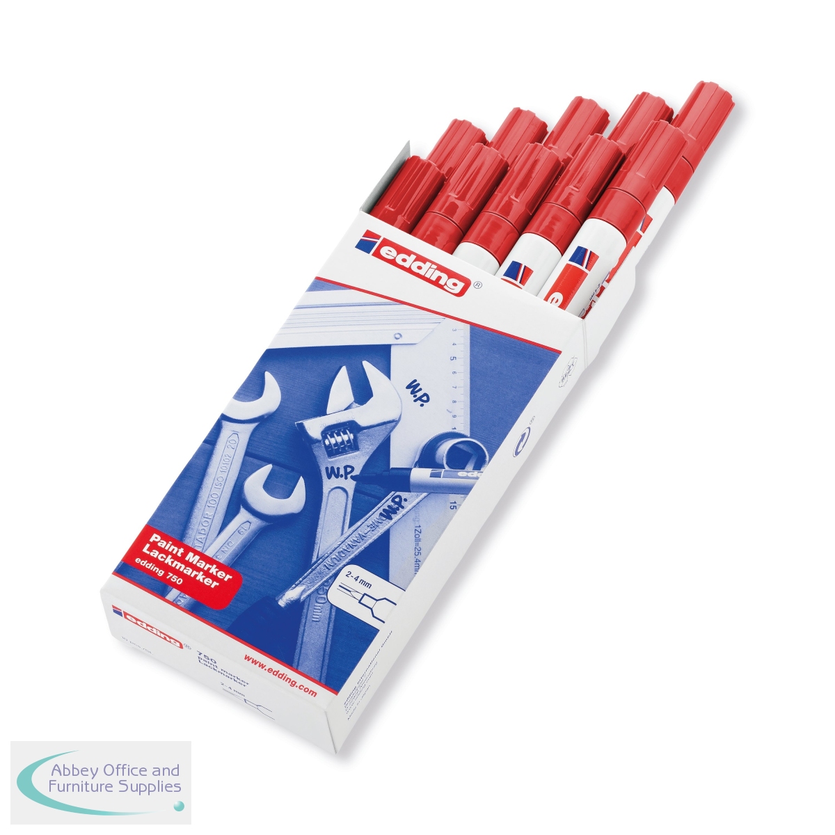 ED750R - Edding 750 Bullet Tip Paint Marker Medium Red (Pack of 10) 750-002