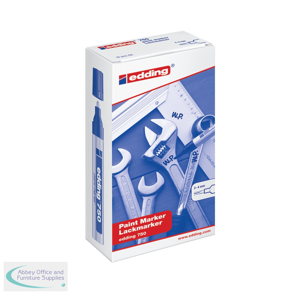 This Edding 750 Paint Marker contains vibrant pigment ink, which is low odour, quick drying and water resistant, for bold permanent marking. For use on most surfaces, the ink is also light fast and heat resistant up to 400 degrees. Great for industrial environments, the marker has a bullet tip for a 2.0-4.0mm line width. This pack contains 10 red markers.