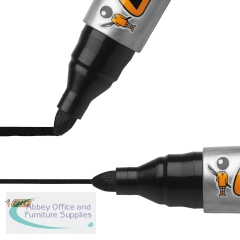 This Bic 2000 Permanent Marker features an ultra-resistant bullet tip that will not bend or retract, even under pressure. The alcohol based, low odour ink is both water and light resistant for long lasting use. The bullet tip writes a 1.7mm line width on most surfaces for labelling, displays and more. The marker also has an extended cap off time of up to 3 weeks without drying out. This pack contains 12 black markers.