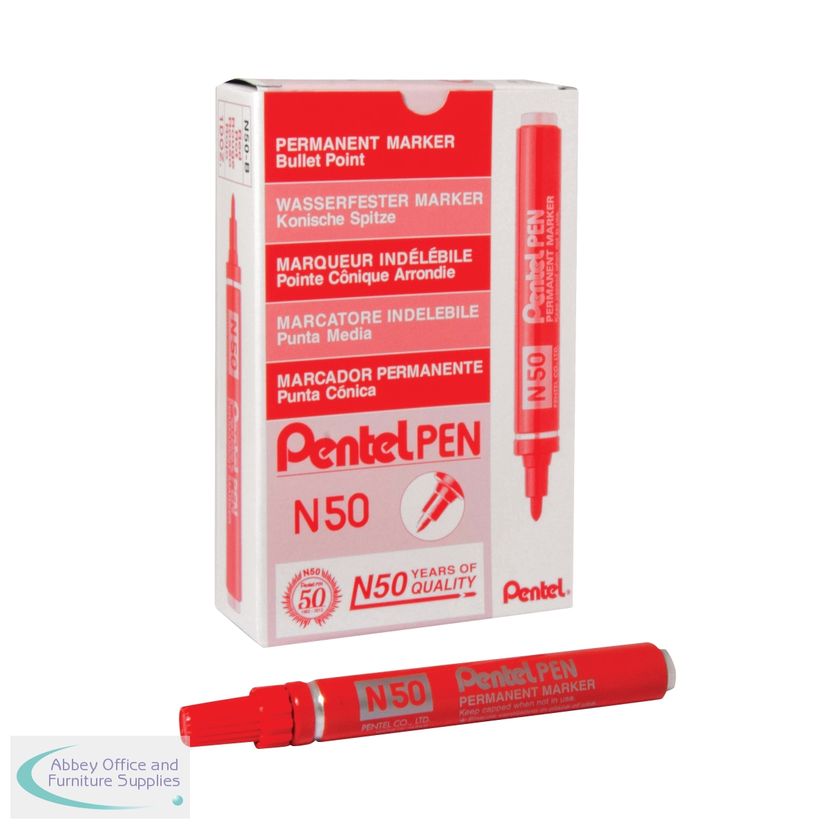 PEN50R - Pentel N50 Permanent Bullet Marker Broad Red (Pack of 12) N50-B