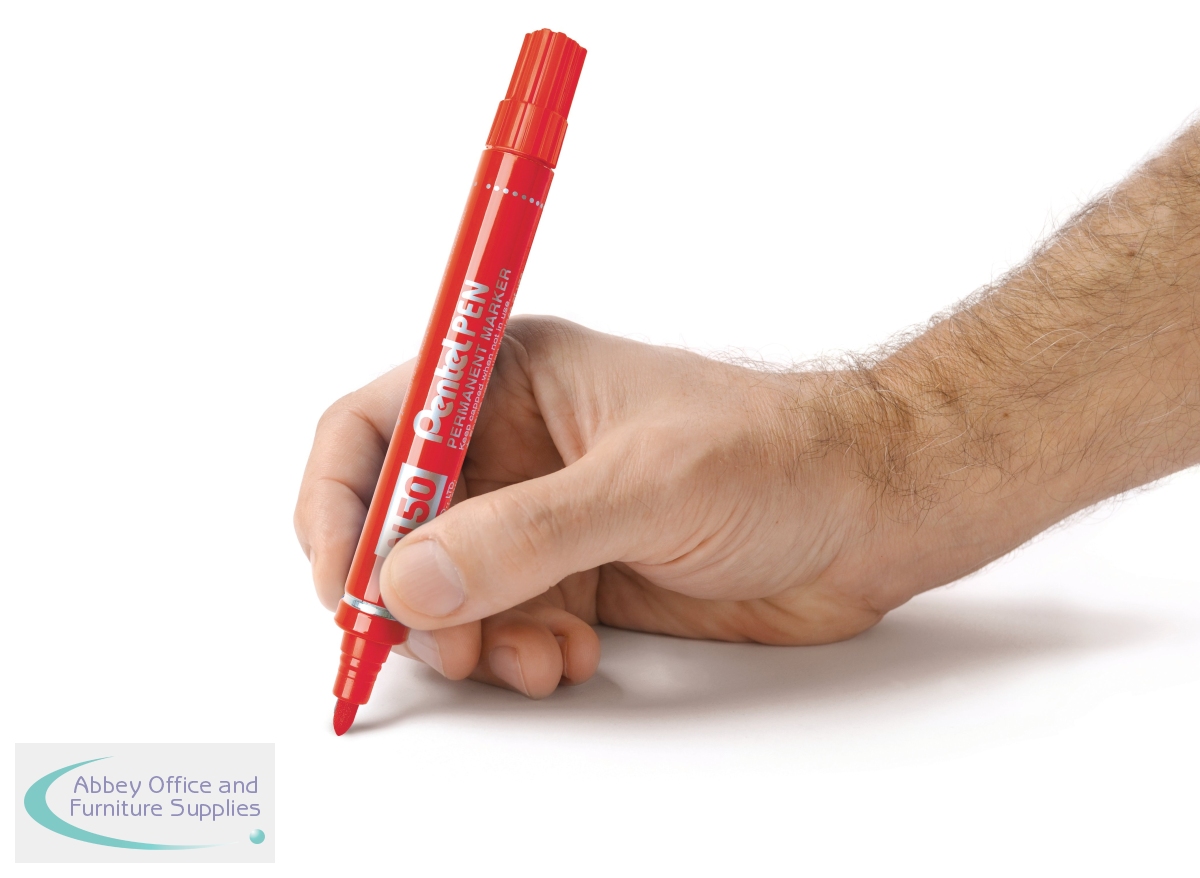 Inside the chunky aluminium barrel of each Pentel N50 permanent marker is quality Pentel indelible ink that writes smoothly on almost any surface from plastic and metal to ceramics and glass. The bullet tip writes a 1.5 to 2.0mm line width which is ideal for general purpose use in industry or commerce. This pack contains 12 red markers.