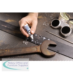 This Pentel Paint Marker is packed with china clay ink that is superbly effective on non-absorbent surfaces such as metal glass rubber and plastic. Because the ink is pigment-based it produces a thick and opaque line that lasts longer even in sunlight. The bullet tip writes a 2.0mm line width is made from strong bonded fibre and features a valve to prevent excessive ink flow.