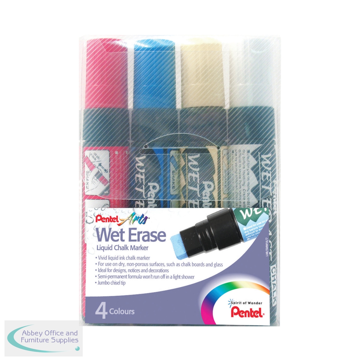 PE11411 - Pentel Liquid Chalk Marker Chisel Tip Jumbo Assorted (Pack of 4) SMW56/4-BCGW