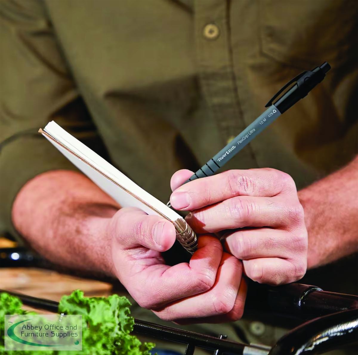 Supplied in a pack of 12, choose PaperMate Flexgrip pens for comfortable, high quality writing in any environment. Black Lubriglide ink provides smooth and clear lines when writing all day long. Like all Flexgrip pens, these pens feature a rubberised full-length barrel that provides all-day comfort and control. These pens feature a cap that protects the nib and prevents ink from drying up when not in use. The medium tip produces a bold line suitable for most applications.
