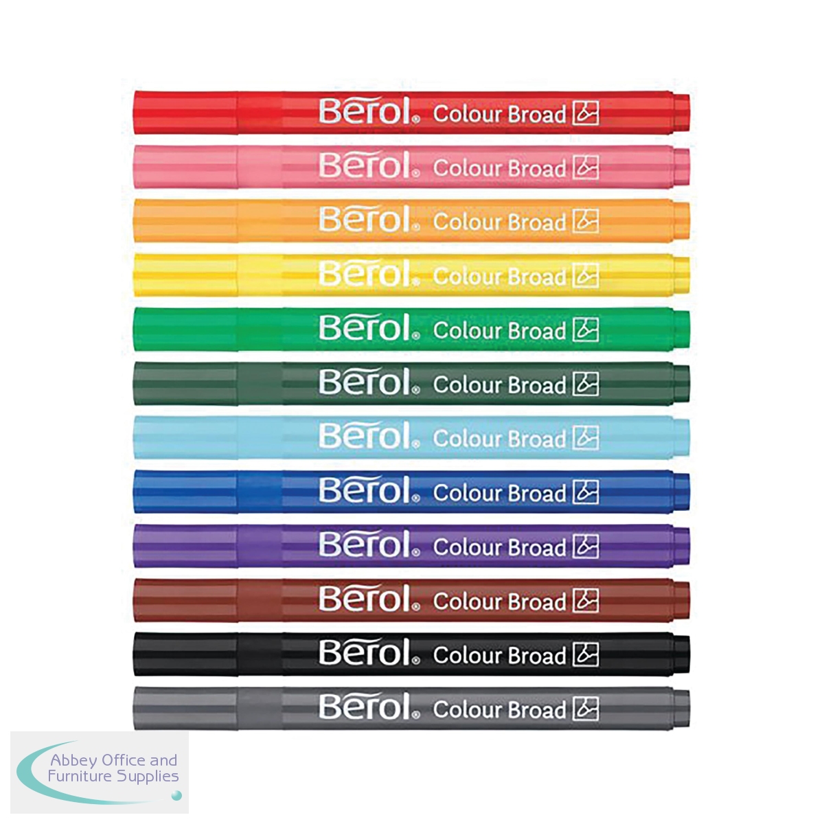 Berol provide long lasting pens that are designed with a fibre tip to prevent them from drying out, ensuring that the Colourbroad will last up to 14 days without its lid. With water based ink, marks can be easily removed from fabric or furniture without staining.