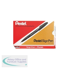 This fibre tip Pentel Sign Pen features non-permanent water based ink and writes a 2.0mm line width. Perfect for graphics and illustrations the environmentally friendly pen is made from 83% recycled materials excluding the ink. This pack contains 12 black pens.