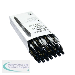 This Pentel EnerGel X pen features a transparent barrel with a soft rubber grip for comfort in use and a convenient retractable design. With revolutionary liquid gel ink the EnerGel formula is quicker drying and smoother flowing than ordinary gel ink giving a similar sensation to liquid ink. The 0.7mm tip writes a 0.35mm line width for general use at home work or at school. This pack contains 12 pens with black ink.