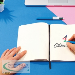 With four colours in one pen, the Bic 4 Colours Ballpoint Pen is a versatile choice for teachers, editors and other users. It features four smooth sliders at the top of the barrel for easy selection between black, blue, red and green ink. The chunky blue barrel provides a firm grip for comfort and control. This medium format pen features a 1mm tip for a line width of 0.4mm, ideal for general handwriting use.