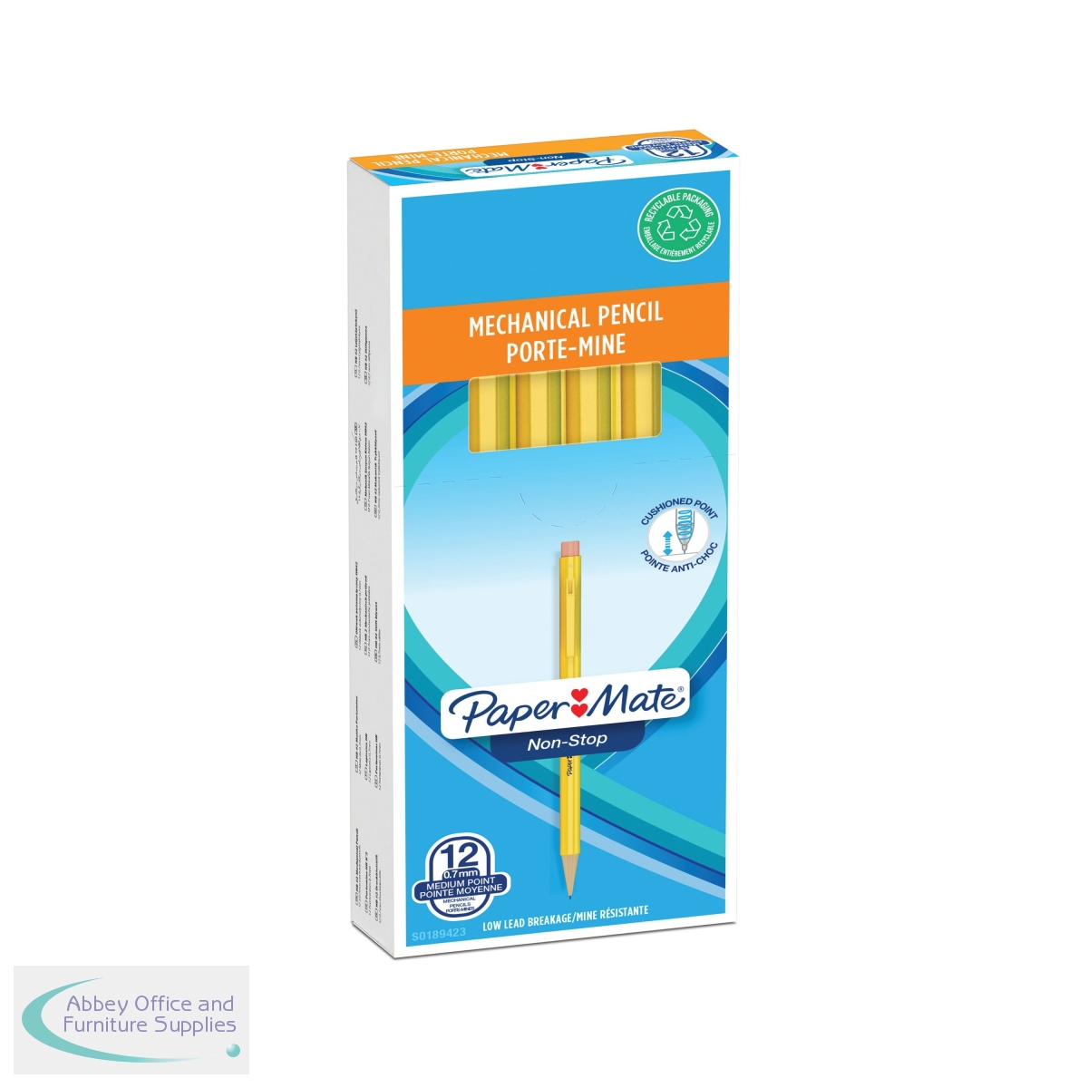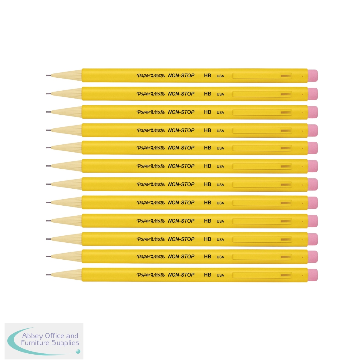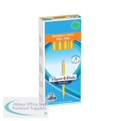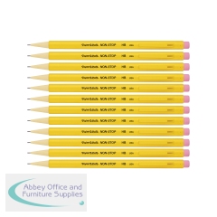 PaperMate Non-Stop Mechanical Pencils are great for handwriting and technical drawing. Just twist the tip to expose fresh lead with the spring-powered action and use the eraser on the end for quick removal of mistakes. The opaque yellow barrel provides a firm grip for extra control and comfort. They are perfect for technical drawing or transcribing shorthand without the risk of a broken pencil. This pack contains 12 x 0.7mm HB lead pencils with yellow barrels.