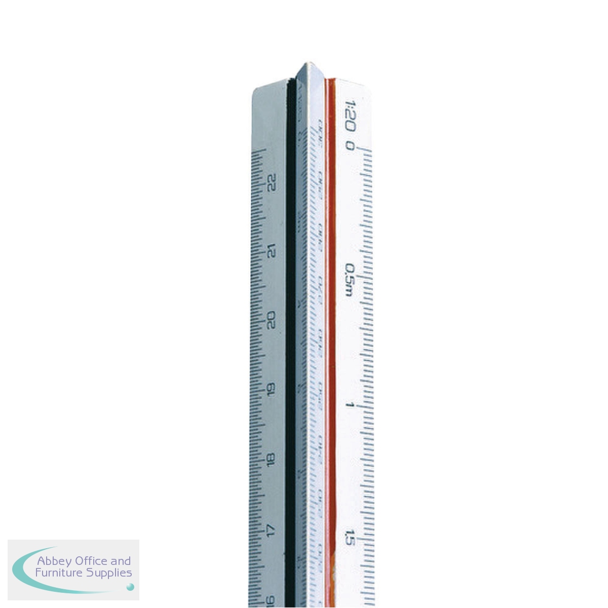 Ideal for precision and technical drawings, the Linex Professional Triangular Scale Ruler is 30cm in length with 1:1-500 scale measurements. It is made from white polystyrene and features grooves in two colours for easy identification. It includes a hard plastic storage case for protection.