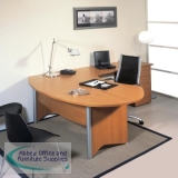 A range all in shapes and curves to please the eye and to welcome your visitors. Available in maple and cherry, The Abbey Osmose Manager Desk will create a warm and welcoming feeling for a user friendly environment.