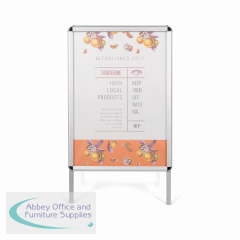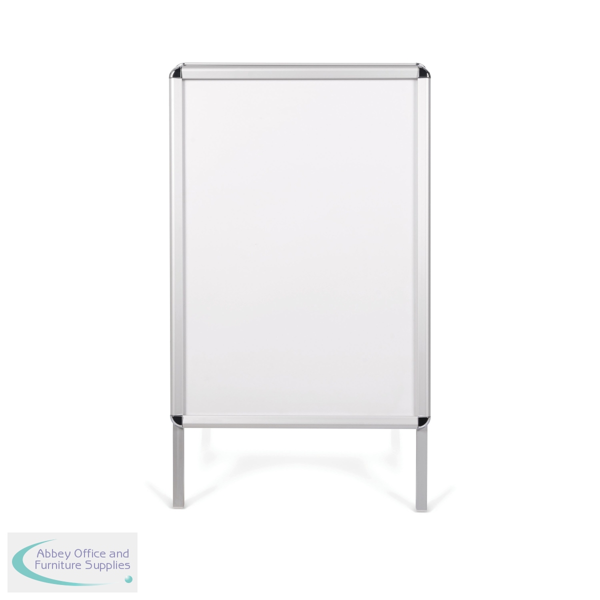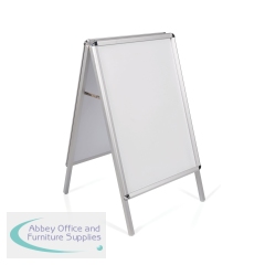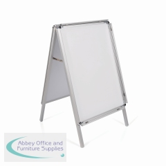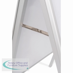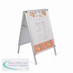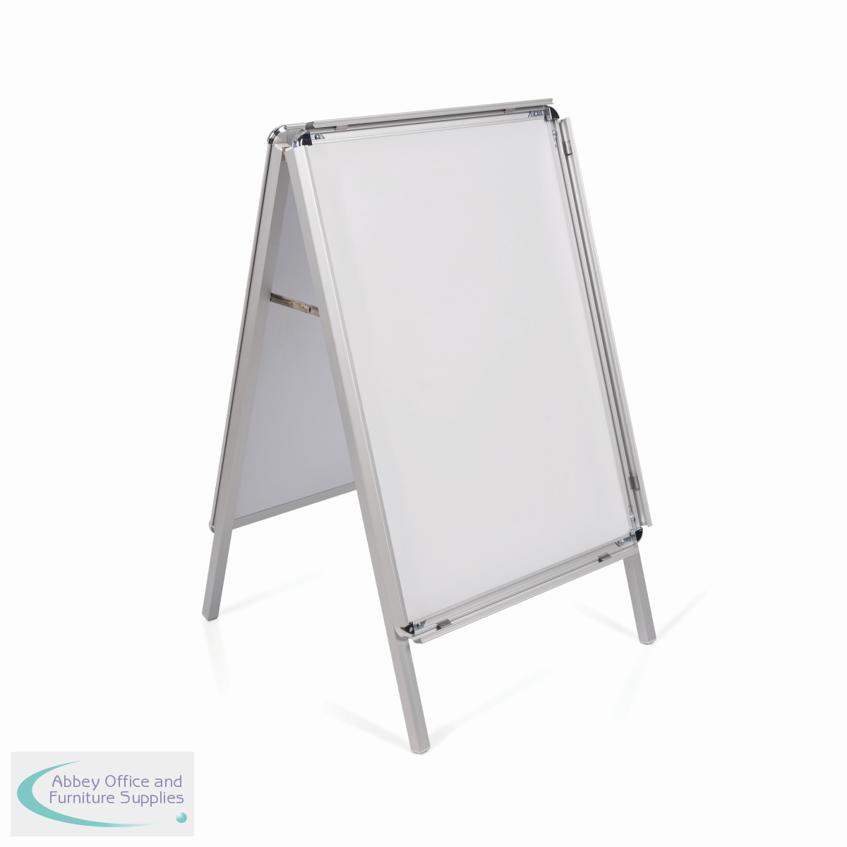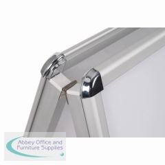 This easy-to-use Bi-Office Info Board has a smart anodised aluminium frame and anti-glare PVC panel, that offers robust protection for posters and signs. Simply unclip the four edges and slip out the PVC panel to quickly and easily insert your poster for display. The stable A-frame design folds flat, allowing easy storage overnight or when not in use.