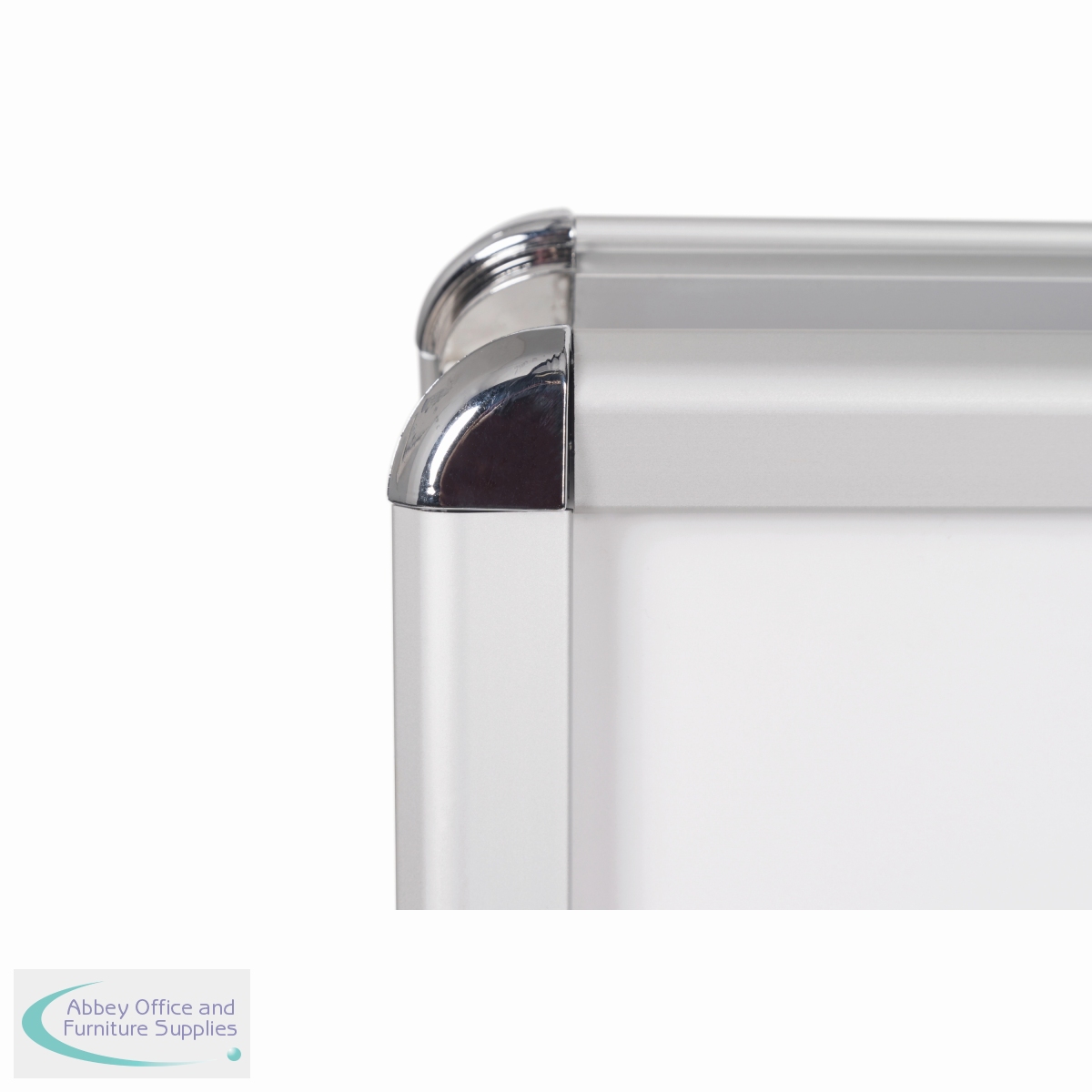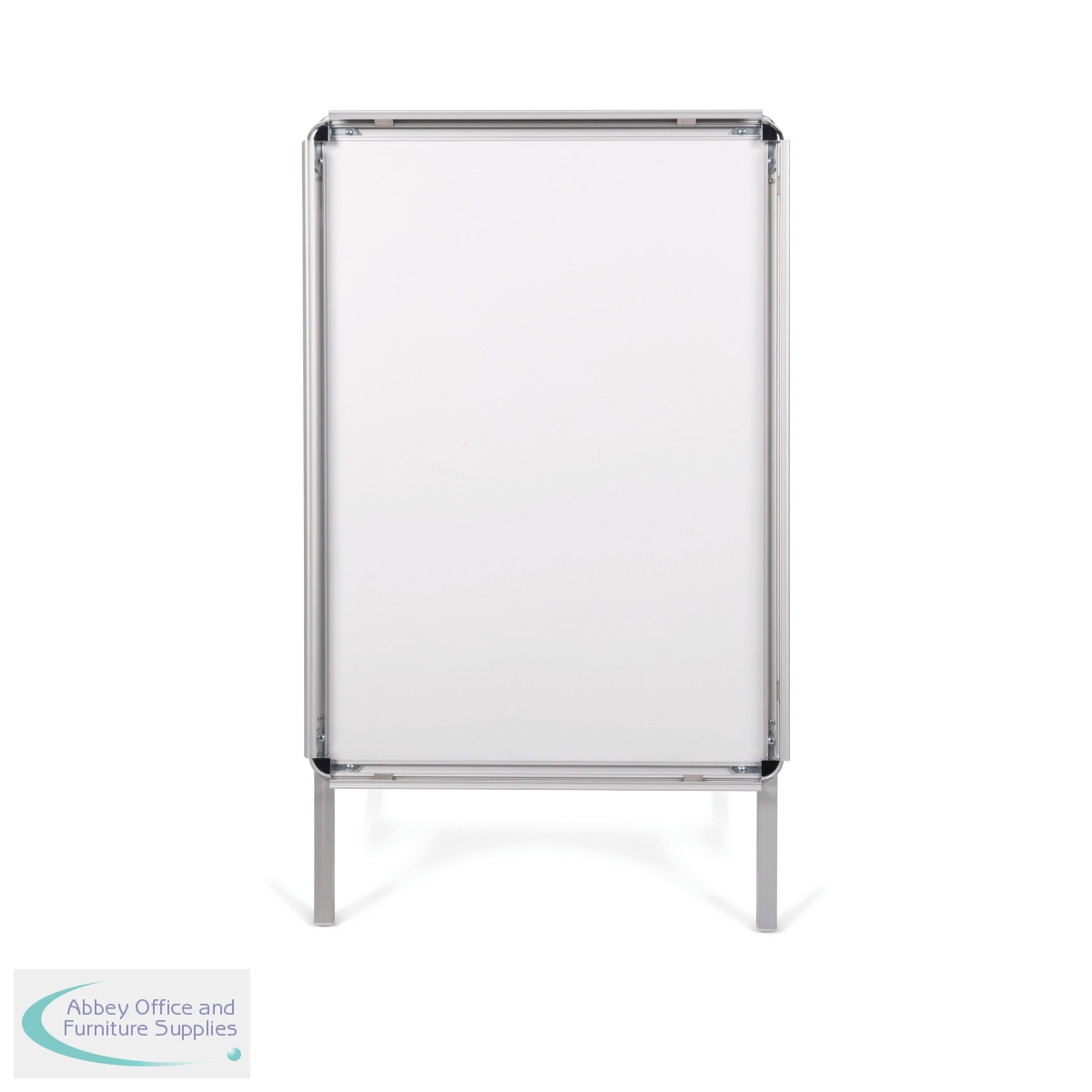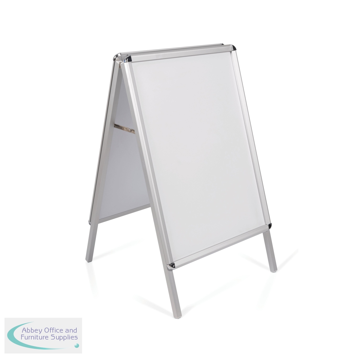 This easy-to-use Bi-Office Info Board has a smart anodised aluminium frame and anti-glare PVC panel, that offers robust protection for posters and signs. Simply unclip the four edges and slip out the PVC panel to quickly and easily insert your poster for display. The stable A-frame design folds flat, allowing easy storage overnight or when not in use.