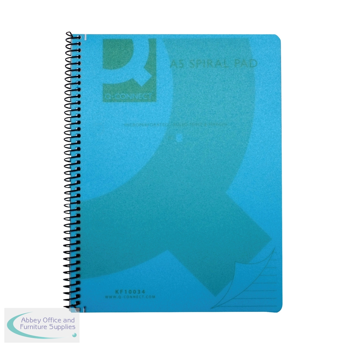 KF10034 - Q-Connect Spiral Bound Polypropylene Notebook 160 Pages A5 Blue (5 Pack) KF10034