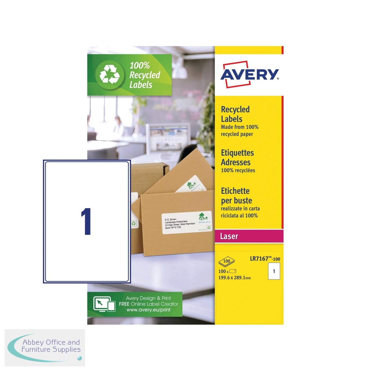 AV81509 - Avery Laser Labels Recycled 1 Per Sheet White (Pack of 100) LR7167-100