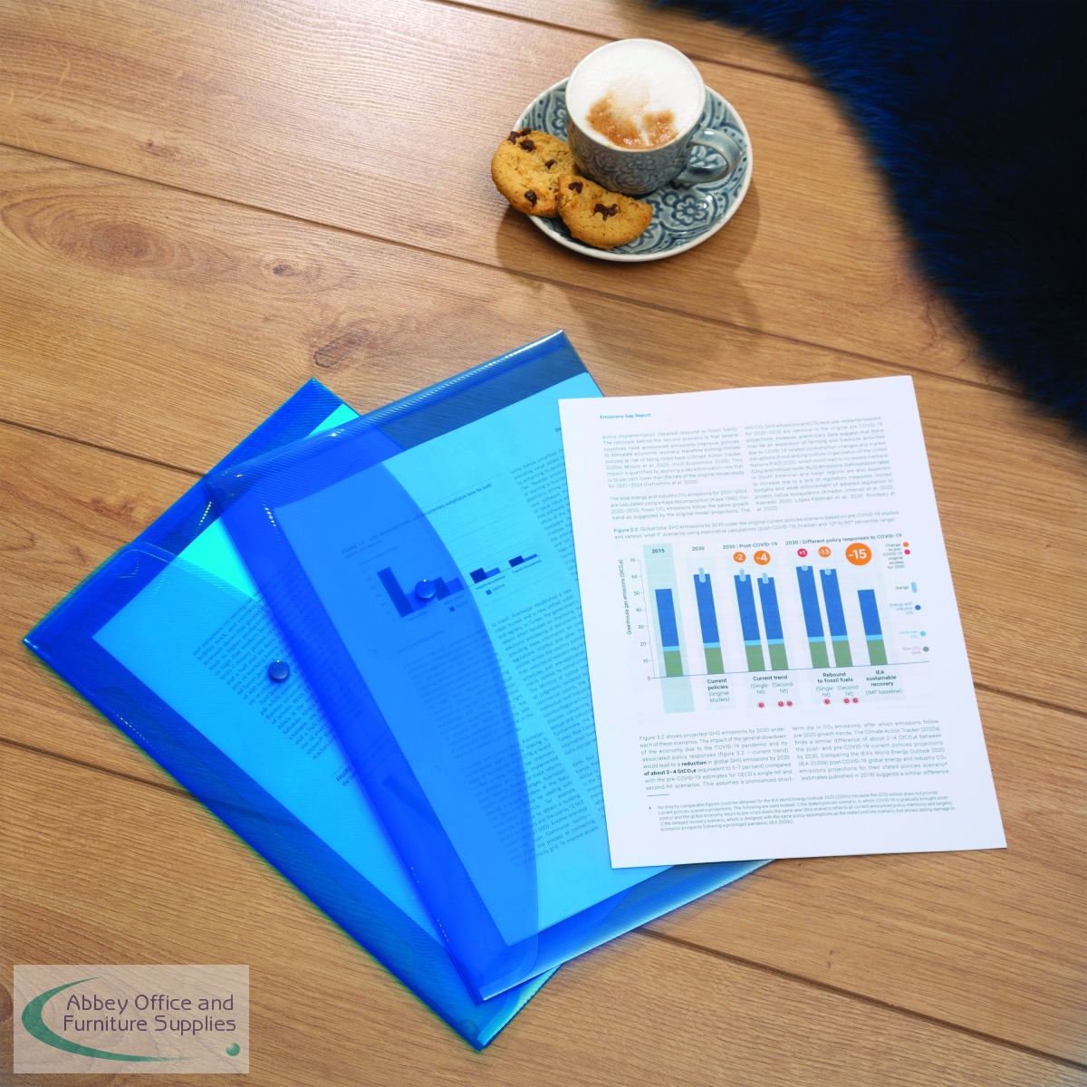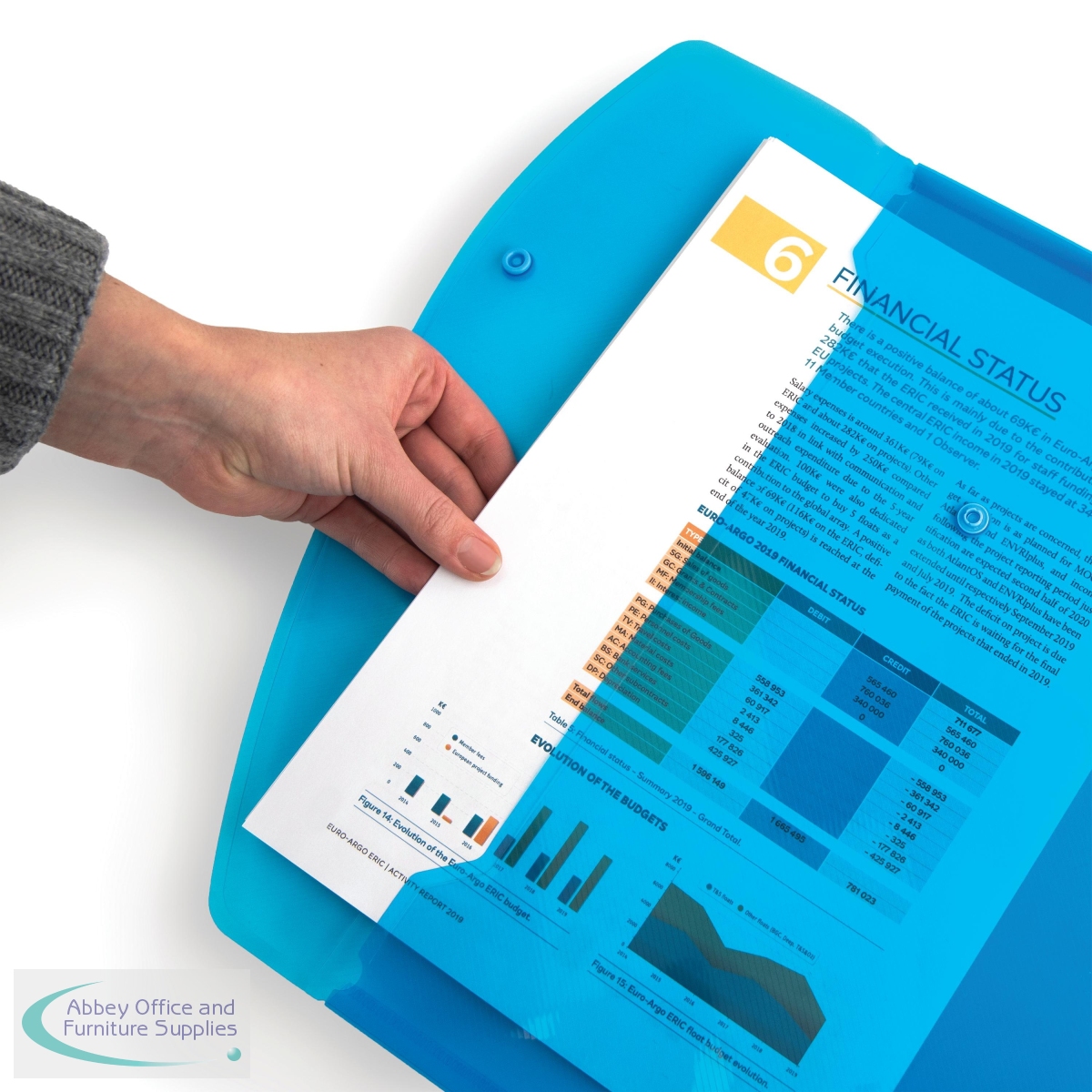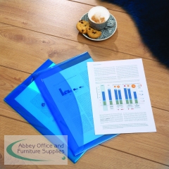 HT17014 - Rapesco Eco Recycled Popper Wallet A4+ Bright Transparent Blue (Pack of 5) 0687