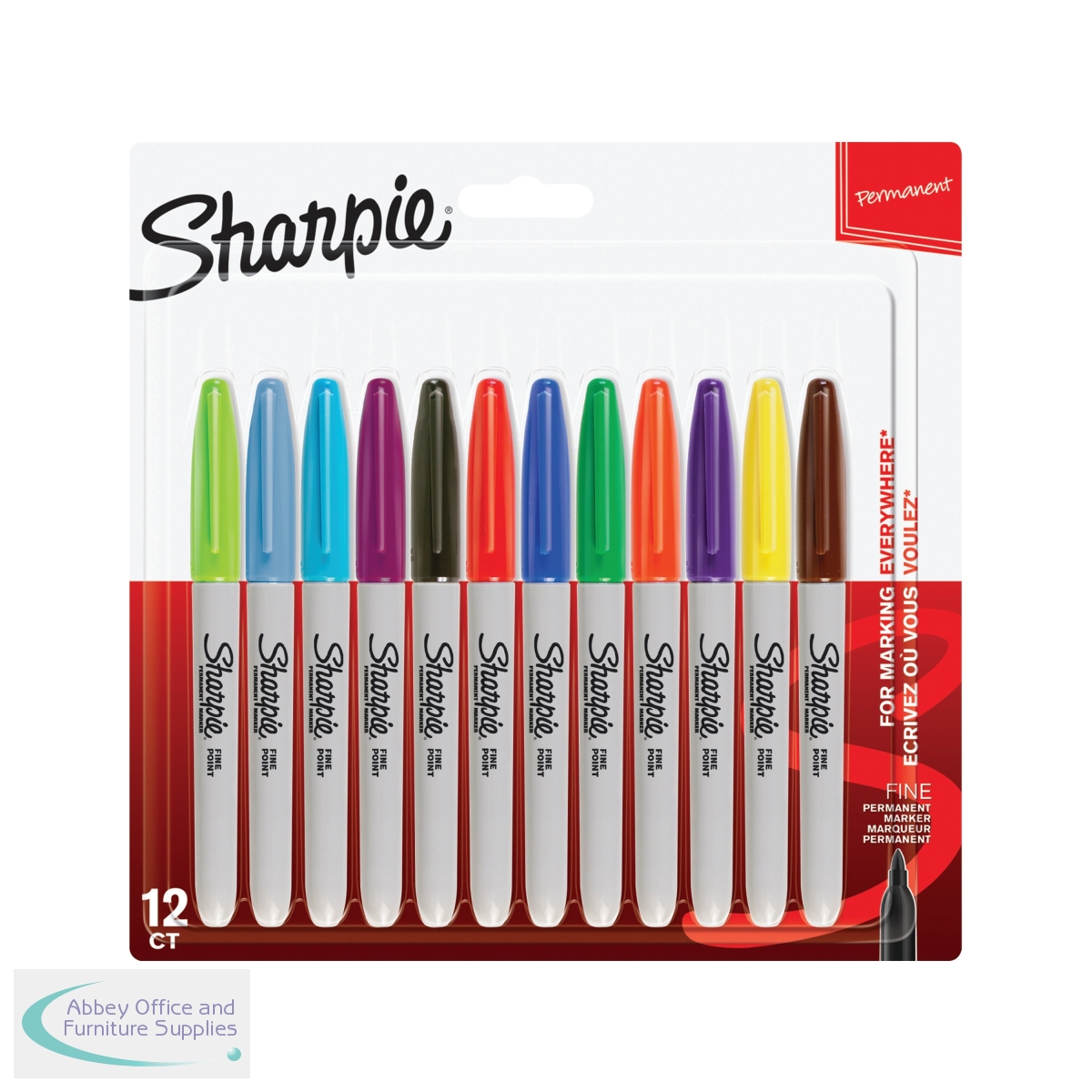 This Sharpie Marker has a fine nib, for precise, detailed, permanent writing on a variety of surfaces. The permanent ink is abrasion, UV ray and water-resistant, for long lasting clarity. This pack contains 12 markers in assorted, vivid colours with a line width of 0.9mm.
