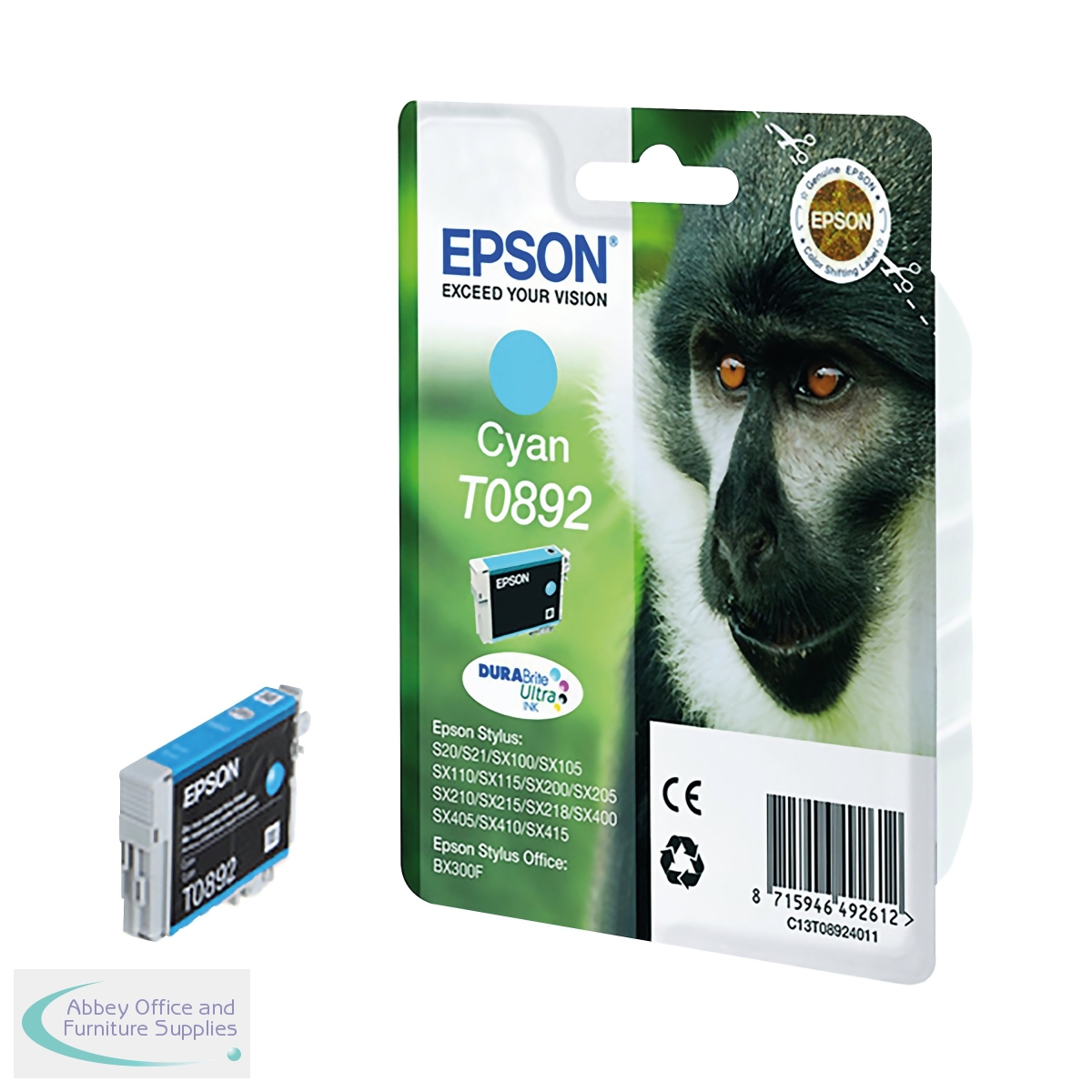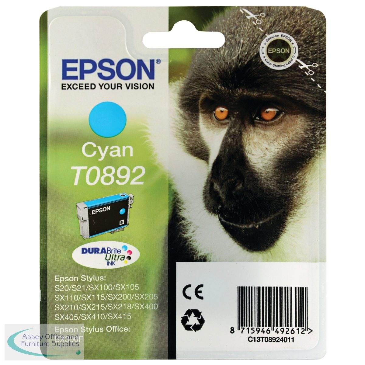 EP08924 - Epson T0892 Monkey DURABrite Ultra Ink Cartridge Cyan C13T08924011