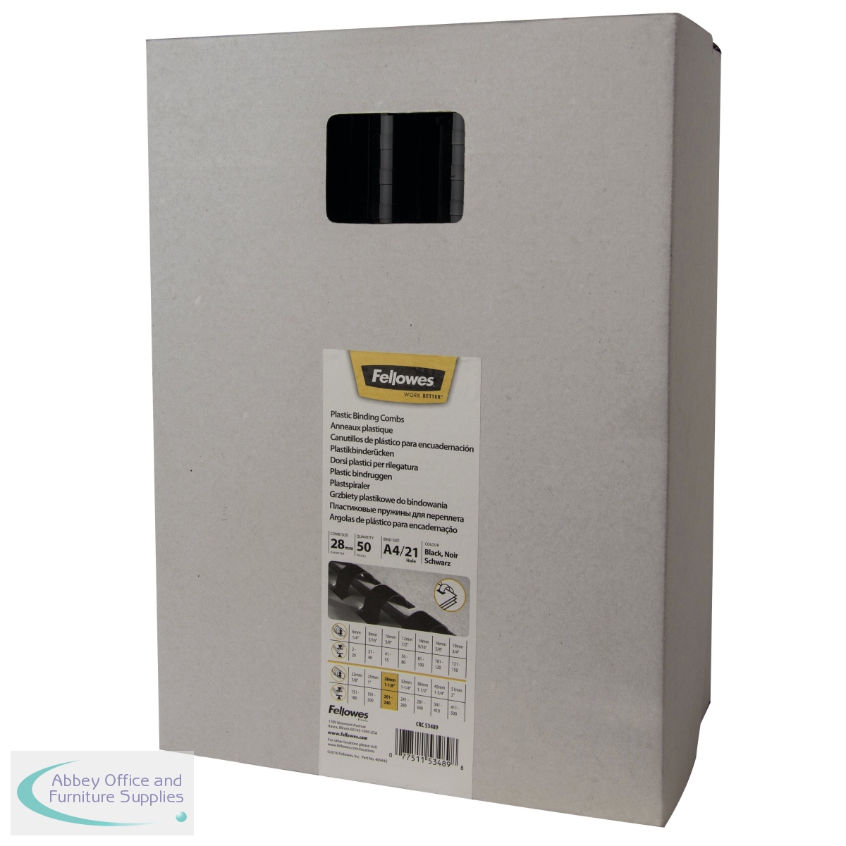 BB53489 - Fellowes A4 Binding Combs 28mm Black (Pack of 50) 53489
