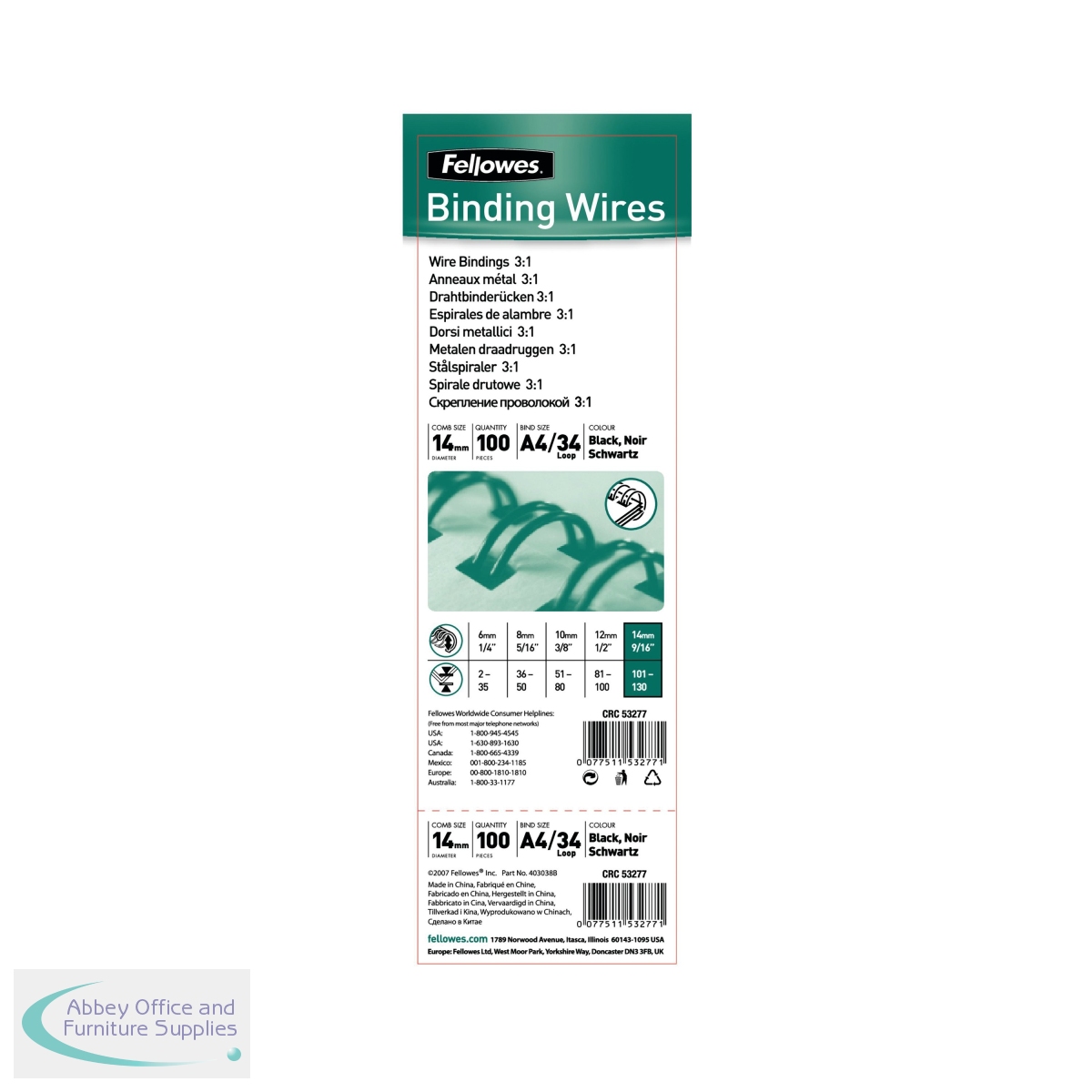 BB53277 - Fellowes Wire Binding Combs 14mm Black (Pack of 100) 53277