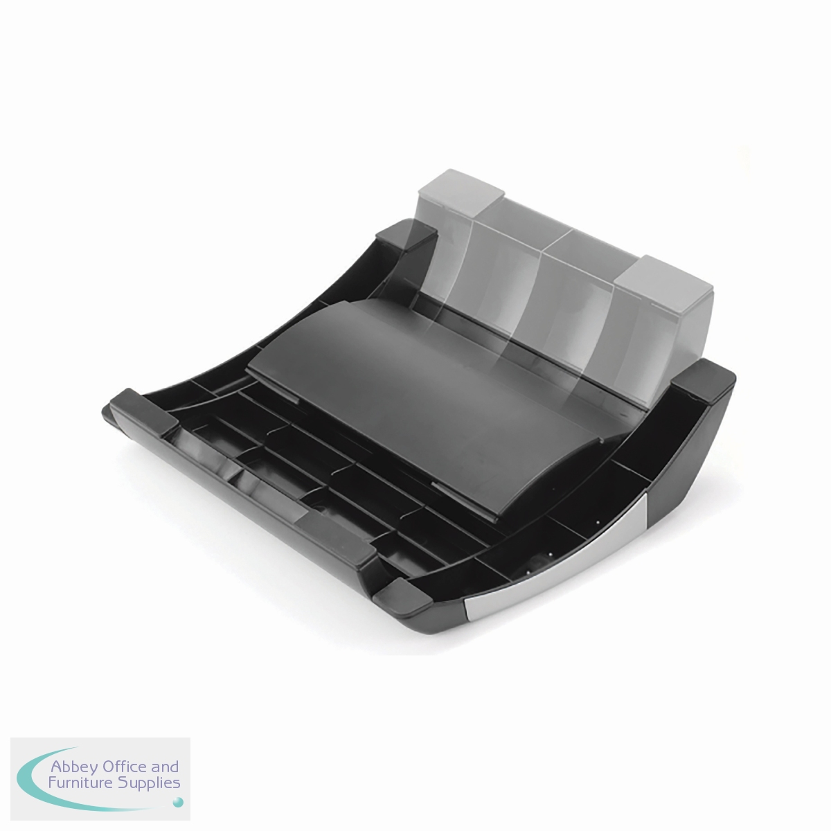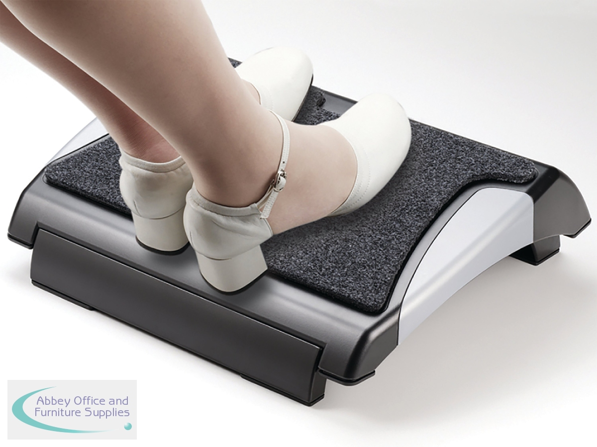 This Q-Connect Ergonomic Footrest features a comfortable surface with a removable, washable carpet. The footrest also features 4 height adjustments from 30mm to 128mm and an angle incline up to 25 degrees. This black and silver footrest has a platform size of 400 x 350mm.