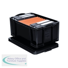 Keep files and documents neatly stored away in this 64 Litre Recycled Plastic Storage Box from Really Useful. With 64L of capacity, the large interior provides plenty of room for A4 and foolscap documents and folders. The opaque black sides and lid keeps your files private and protects them from fading in harsh sunlight. The design is stackable as well for space-saving storage, and features handles for easy carrying. It's eco-friendly as well, made from 100% recycled plastic.