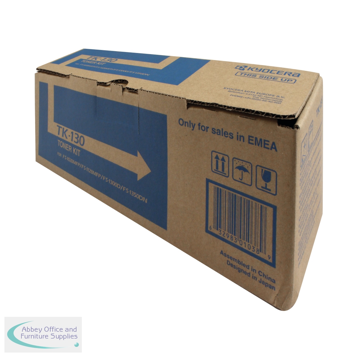 By installing a genuine Kyocera Black Laser Toner Kit (TK130) you can enjoy continued high-quality laser printing from your Kyocera FS-1300 or FS-1350 printer. You'll see a flashing red toner light when your printer is running low on toner, so make sure you order a spare cartridge. When you see a solid red toner light and no other lights, simply swap the old cartridge for the replacement and continue printing. This standard yield cartridge is packed with enough black toner to print 7,200 pages.