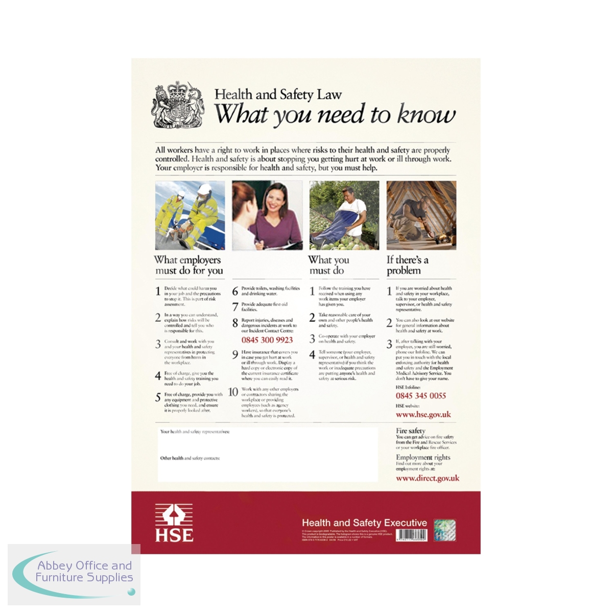 As an employer, you are legally required to display a HSE Health and Safety Law Poster. The poster explains how workers and employers can follow Health and Safety Law in an easy-to-use numbered list with full-colour pictures. Printed on fully recyclable PP5 plastic, it is durable with quality UV-fast ink that will stay readable for up to 5 years even in direct sunlight. The matte finish makes the poster easier to read, with no reflection under artificial lights and the antimicrobial coating stops the growth of microorganisms, making it safer for use in food environments. It features a unique serial number and hologram and details HSE and incident contact centre helpline numbers.