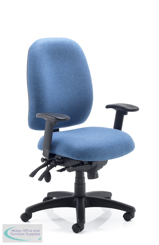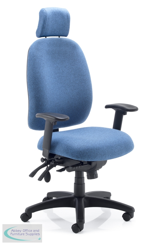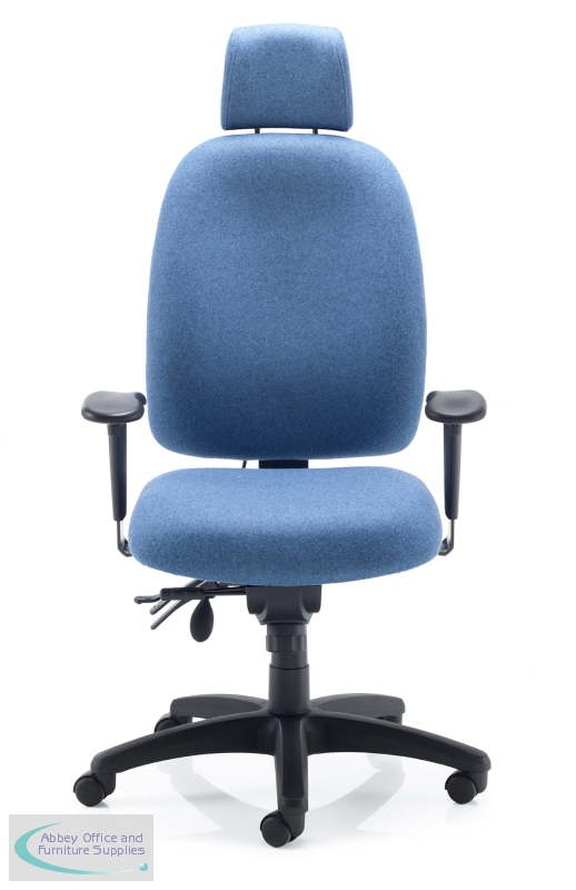 Abbey Vista High Available In Charcoal Fabric Also 24 hours Orthopaedic Chair / High Back Task Chair, Upholstered seat, support and functionality, giving the user unique control of their posture. The back has a lumbar pump to add more to the back .It has a racket back with 3 heights to enable you to find your comfort zone. This chair encourages the user to adopt a more dynamic way of sitting by offering the greatest freedom of movement. The seat is designed to help keep the pelvis straight, thus encouraging the spine to assume its natural double S shape. The chair has a moulded back foam featuring kidney supports which encourage a healthier posture.