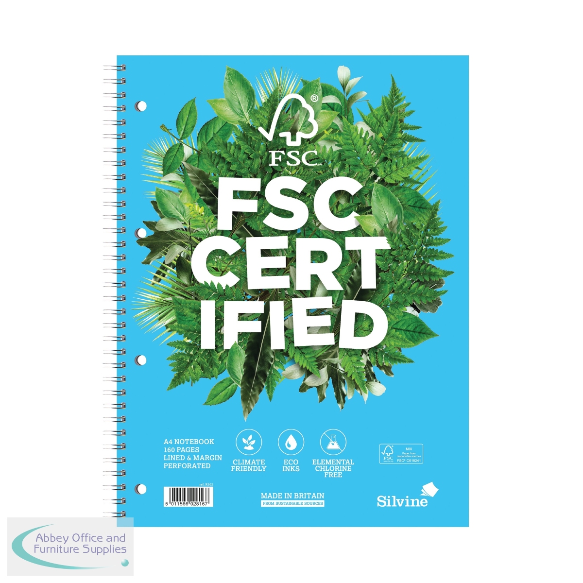 SV43692 - Silvine Envrionmentally Friendly Wirebound Notebook 160 Pages A4 (5 Pack) FSCTW80