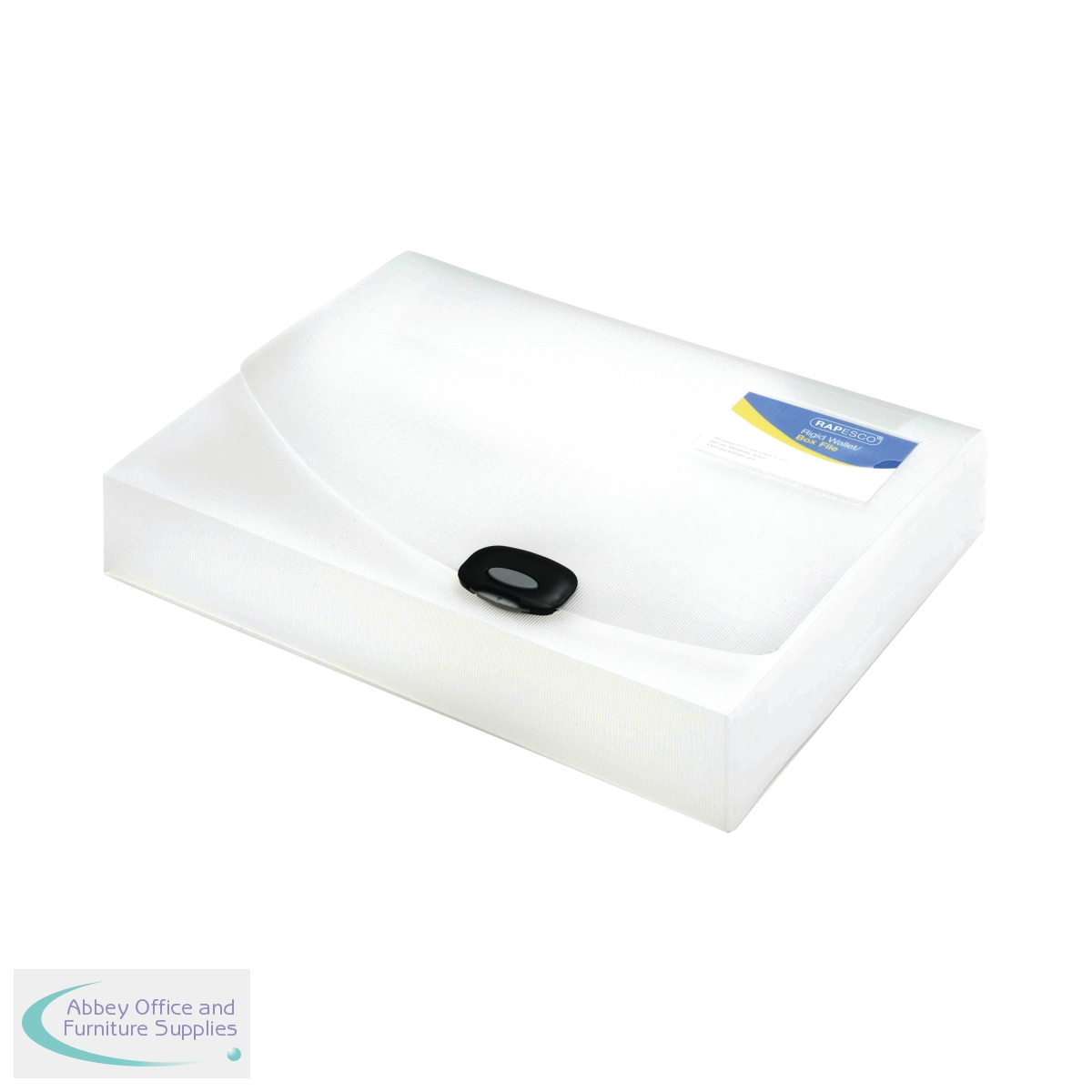 Suitable for A4 documents, this Rapesco rigid wallet/box file is made from heavy gauge polypropylene for long term storage. The 60mm file can hold up to 600 sheets and features a business card holder for personalisation with welded sides and a push-lock clasp closure for security. This pack contains 1 clear file.