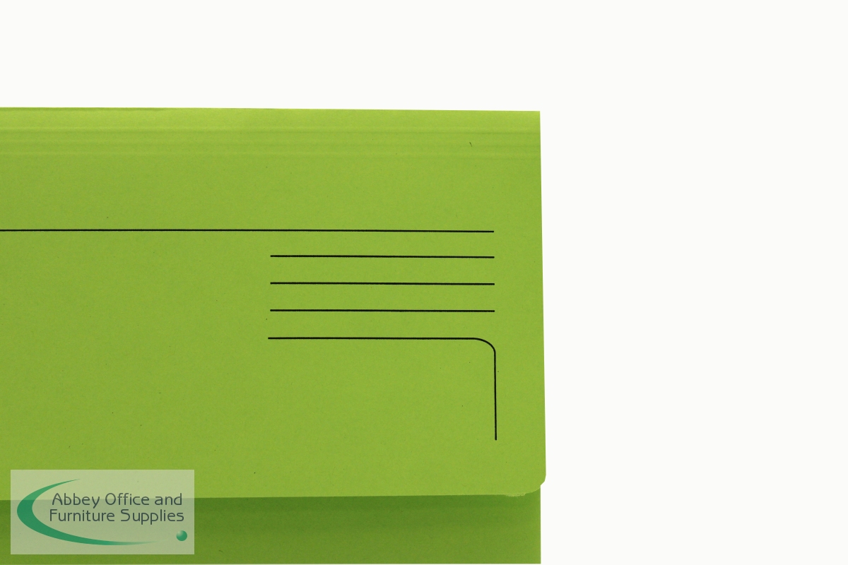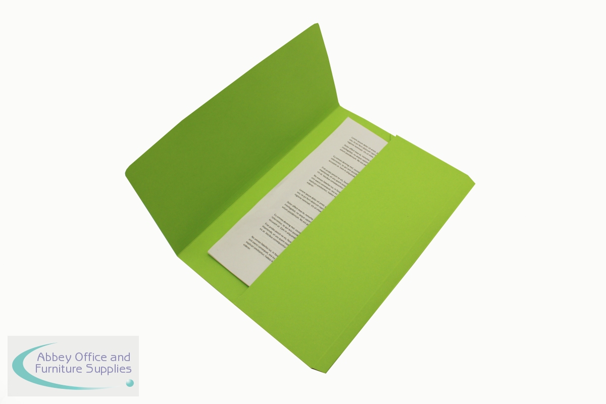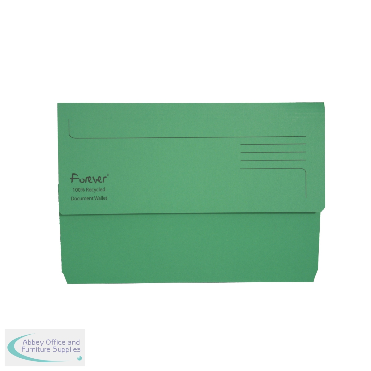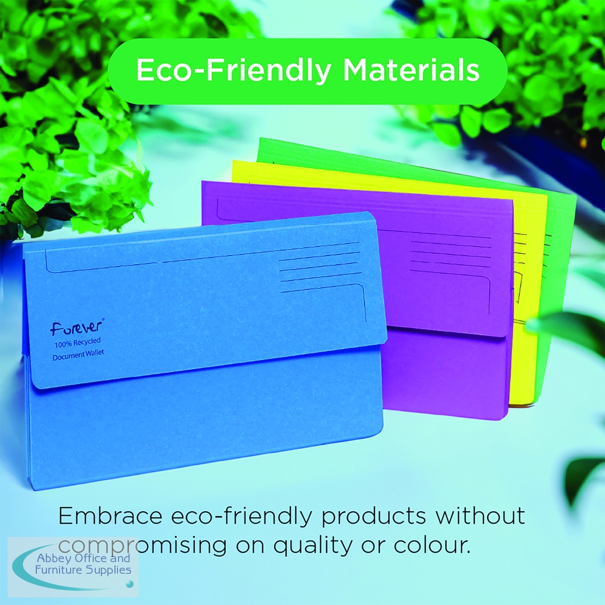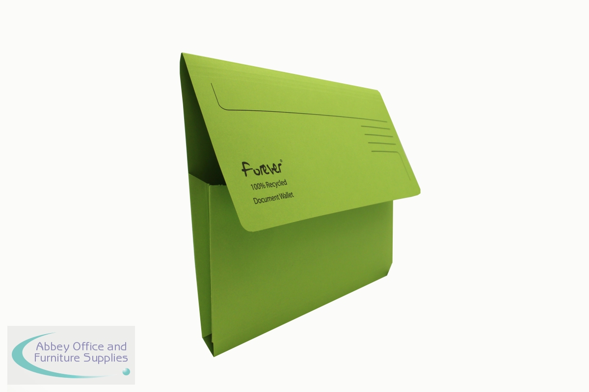 This environmentally friendly Forever document wallet is made from 100% recycled, 300gsm manilla. The folder features a 32mm gusset and can hold up to 180 sheets of A4 or foolscap paper. This pack contains 25 bright green foolscap document wallets, ideal for colour coordinated filing.