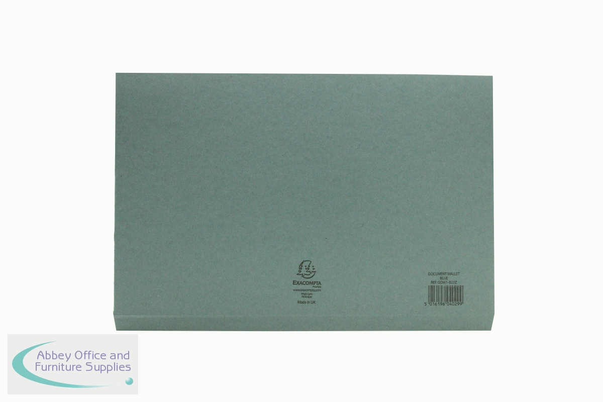 This handy Exacompta Guildhall document wallet is made from strong 285gsm manilla and is ideal for home, office or classroom filing. The wallet has a 32mm gusset and can hold up to 180 sheets of A4 or foolscap paper. This pack contains 50 blue wallets, ideal for colour coordinated filing.