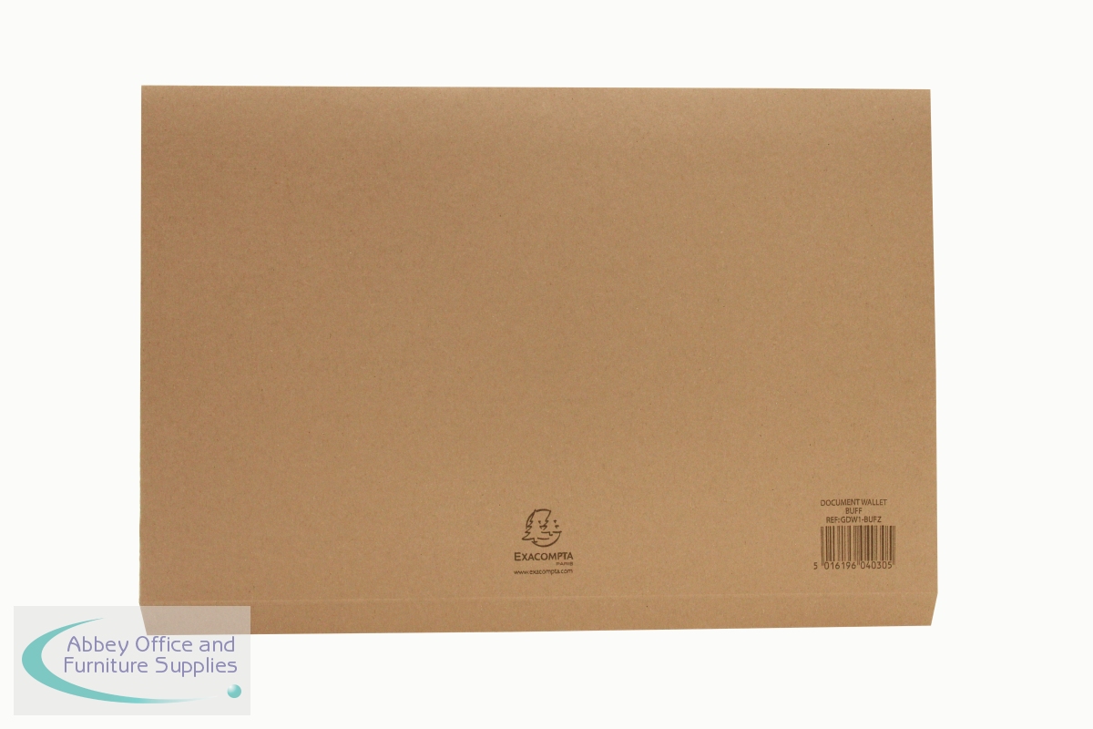 This handy Exacompta Guildhall document wallet is made from strong 285gsm manilla and is ideal for home, office or classroom filing. The wallet has a 32mm gusset and can hold up to 180 sheets of A4 or foolscap paper. This pack contains 50 buff wallets, ideal for colour coordinated filing.